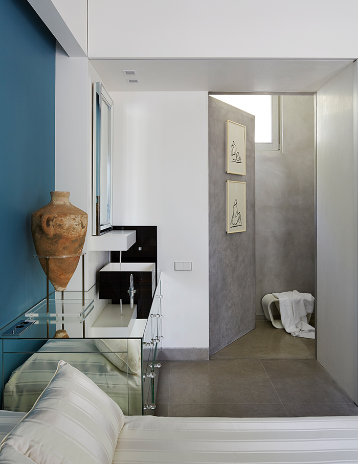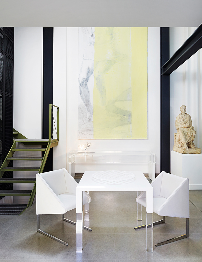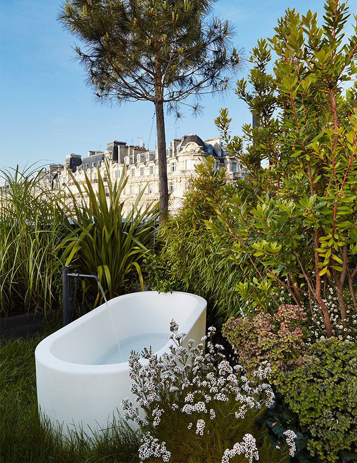 Wanting to reinvent the art of living outdoors, the creative planned a terrace with a monochromatic winter garden that stretches across the topmost levels. This serene escape, cooped up high away from the bustle of the city, is where one can go for a breathtaking, all around view, and some peace and quiet.