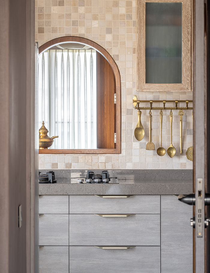 “The devil lies in the detail, but they matter even more in small spaces because everything is experienced so closely, and hence the attention to detail becomes microscopic” observes Kavan Shah. According to the homeowners, the best-loved part about the space is walking barefoot on the river-washed stone in the living and dining areas and feeling grounded and connected to the entire space through that experience.
