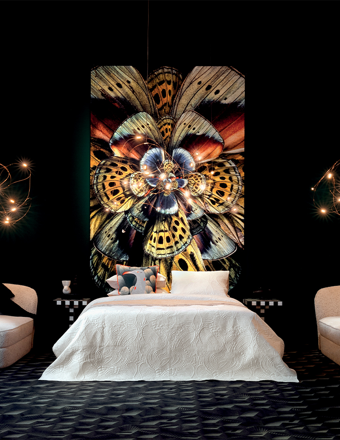 Winners of attention, commanders of comfort and tellers of trends, bedrooms that excite! A power-packed montage painted with swirls of prints, patterns and colours that cradles art and function together is where our bedroom intentions are, in line with bedroom decor trends 2024. Enter, the embroidered Dodo Pavone duvet cover set by Moooi bedizened with a dreamy quilted motif and 3D embroidery, inspired by the now-extinct bird dodo.