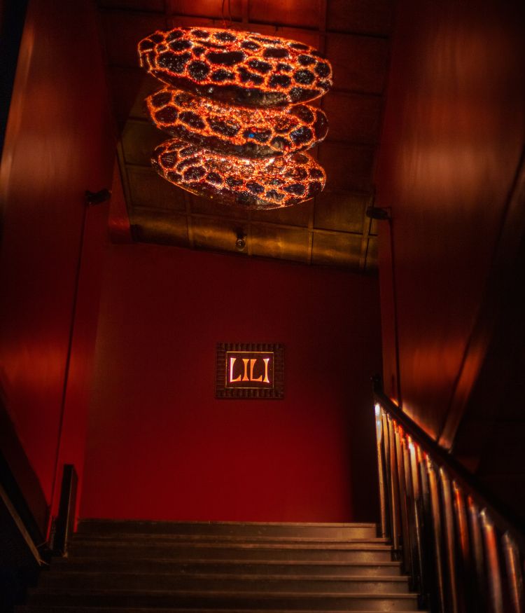 It’s not often you find a Picante that really means business. It’s even rarer to find a restaurant that not only shakes up a fiery glass of picante, but wears its interiors as equally decadently as the dishes on the menu. For a new Cantonese kitchen and bar in Hyderabad called Lili, these were all a part of the plan. Say for starters, a gigantic dimsum casually dangles above the bar. Functionally a chandelier designed by Goa-based artist Siddharth Kerkar, diners sip away under the dimsum’s hypnotic glow as the bartender mixes punchy cocktails. “I wanted the space to have an identity. Although there are over 30 artworks here, the giant dimsum sets a dramatic warm glow,” he says.