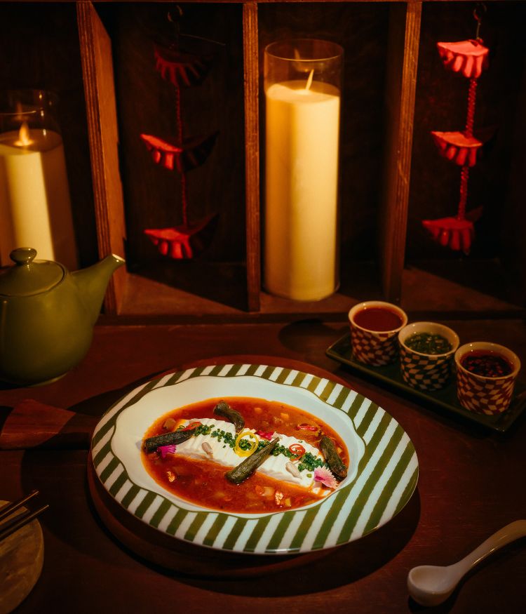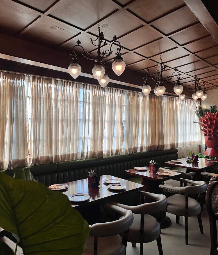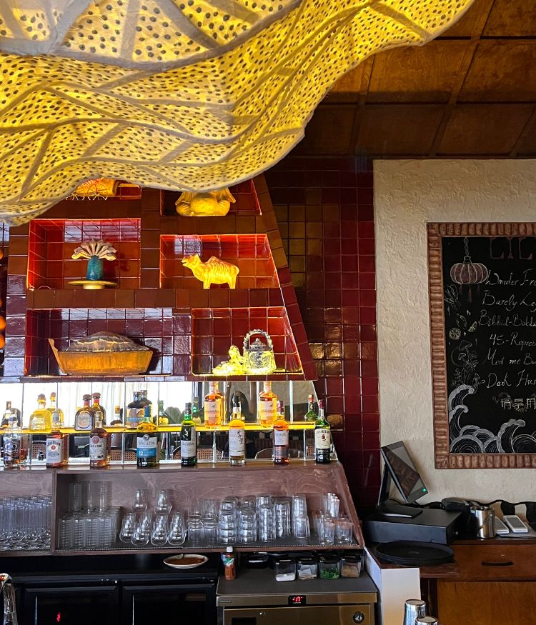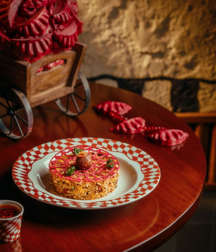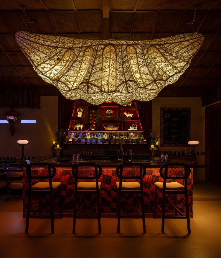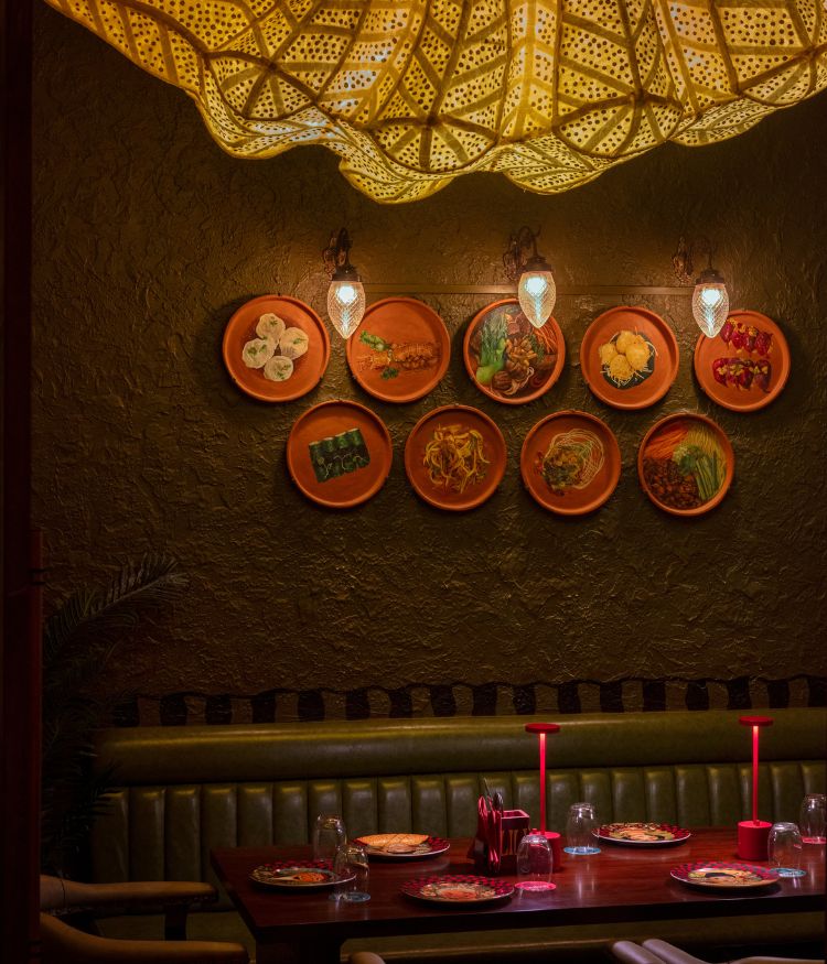 It’s not often you find a Picante that really means business. It’s even rarer to find a restaurant that not only shakes up a fiery glass of picante, but wears its interiors as equally decadently as the dishes on the menu. For a new Cantonese kitchen and bar in Hyderabad called Lili, these were all a part of the plan. Say for starters, a gigantic dimsum casually dangles above the bar. Functionally a chandelier designed by Goa-based artist Siddharth Kerkar, diners sip away under the dimsum’s hypnotic glow as the bartender mixes punchy cocktails. “I wanted the space to have an identity. Although there are over 30 artworks here, the giant dimsum sets a dramatic warm glow,” he says.