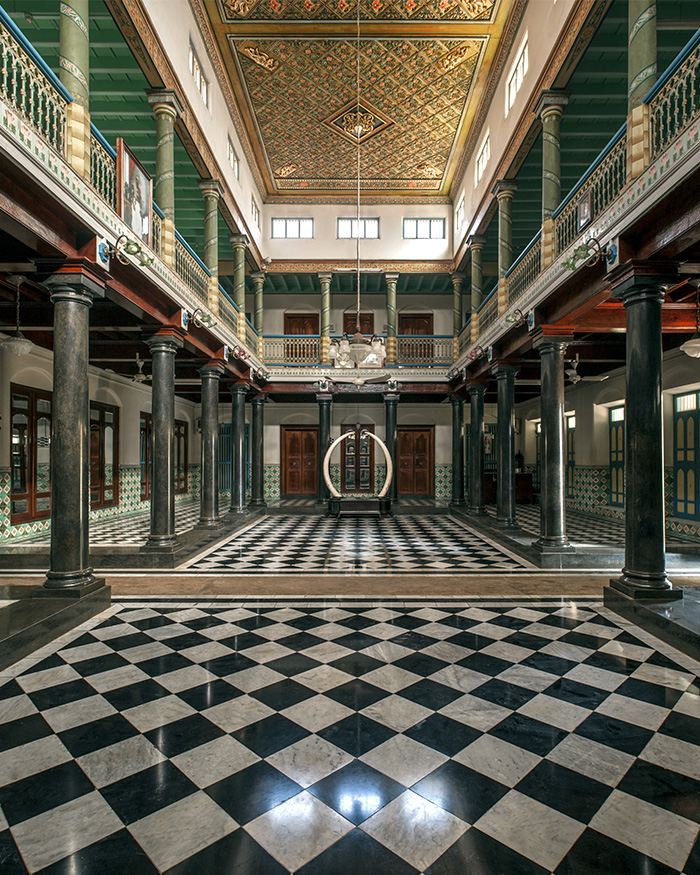 In the Deccan, surfaces are rarely still. From temple towns to mercantile streets, a single decorative instinct runs through the region: an inclination towards density, layering and naturalistic detail. Granite is carved into tiers of deities and dancers. Timber and tile crowd the facades of trading houses. Cloth is adorned with medallions, flowers and animals. Behind these crowded surfaces lies a long history of movement and contest. Trade routes brought bullion, dyes, silks and new motifs into port cities and inland courts. Armies and invasions redrew boundaries, prompting rulers to build in stone as a statement of protection and power. Mercantile communities channelled profits from distant colonies into ancestral homes, converting credit and risk into marble floors, carved ceilings and saturated walls. Court workshops translated the same anxieties and ambitions into textiles embroidered in silk and metal thread, turning portable cloth into archives of status and alliance, alongside myths and belief systems.