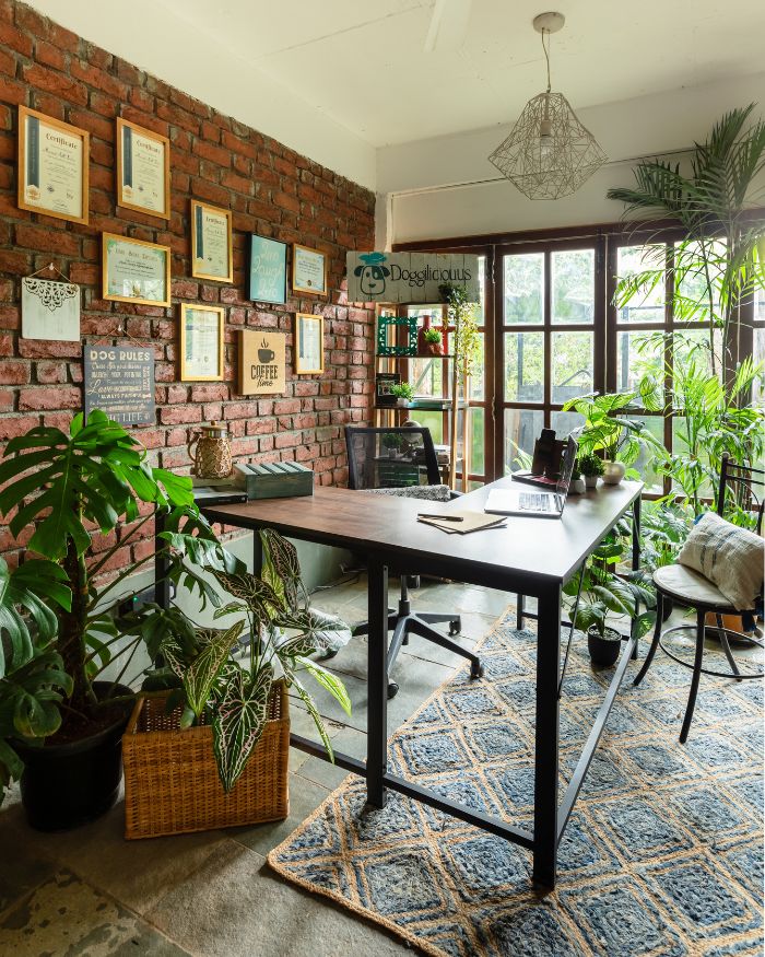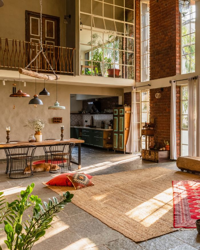 Contrary to popular belief, access to an open space or a garden is not the only trait of a pet-friendly home. Think no toxic paint, swapping slippery tiles and all furniture within a paw’s reach. Manssi Vedha Karambelkar, a canine nutritionist, sought out Masons Ink to create her home slash office and production unit. Mother to two rescue pets and Doggiliciouus, a wellness brand for dogs, her list of must-haves and have-nots were clear. Teeming with greenery, the emanating 5,000 sq ft brick loft could elicit a wow (and a woof!) from all who walk in. A beaming example of Barkchitecture!