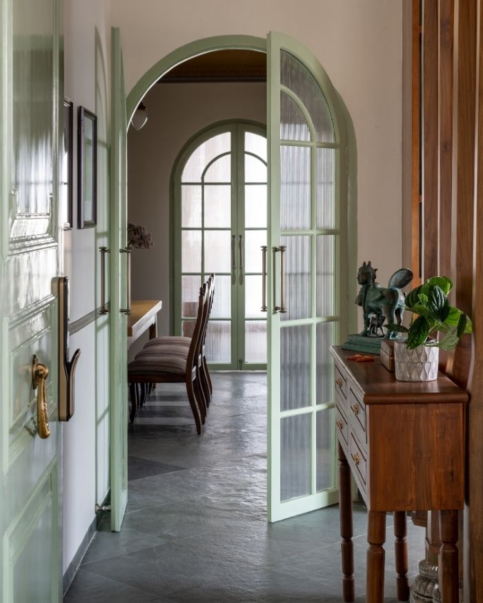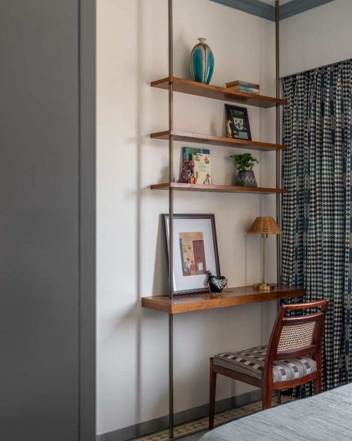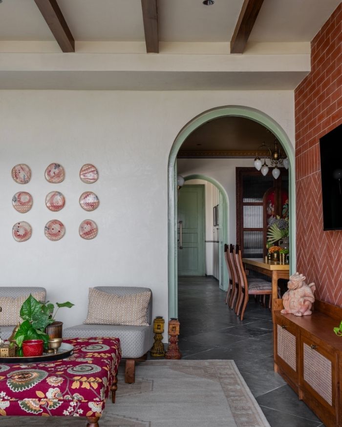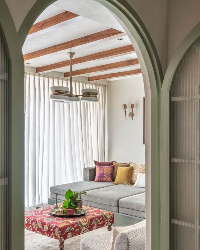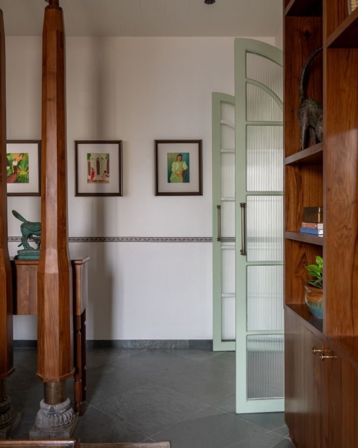 "She brought in vintage carved panels for the Mandir and antique pillars sourced during her travels, and we built the design around these heirloom pieces, allowing the home’s story to grow from her own memories and finds.”