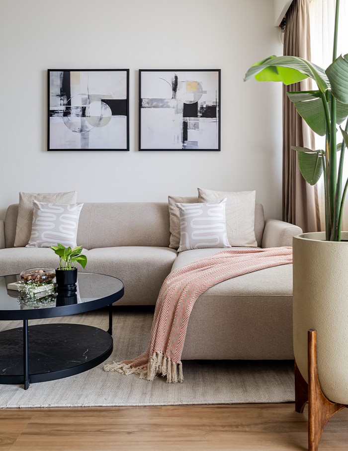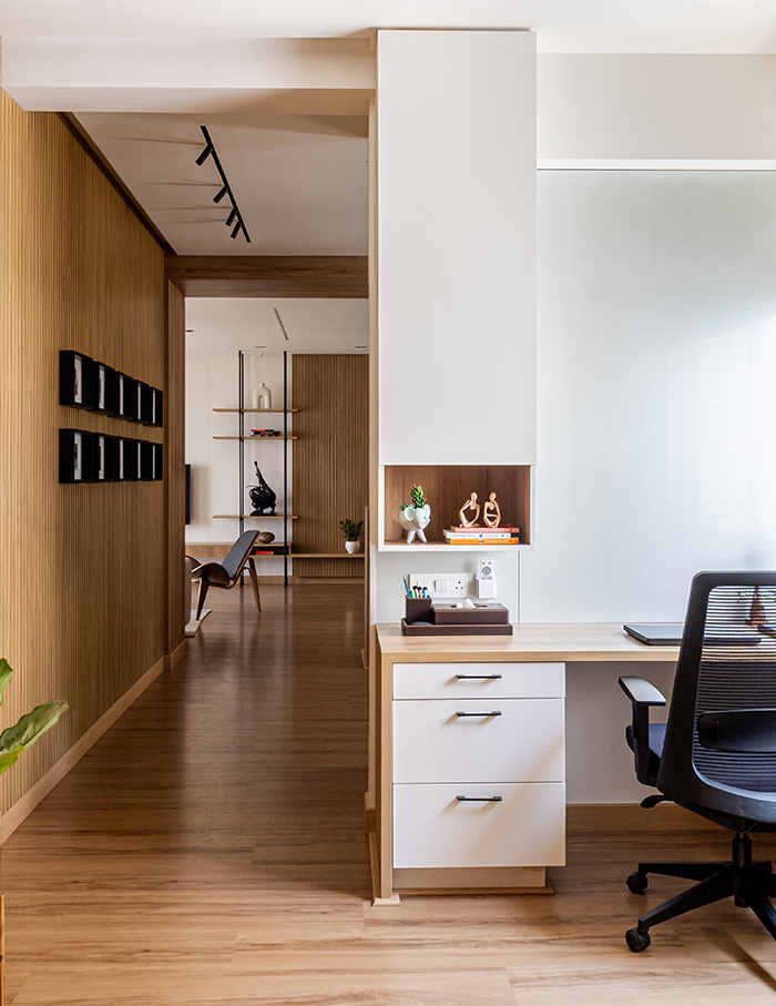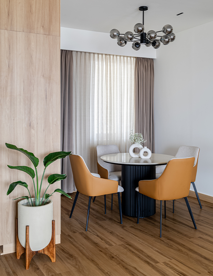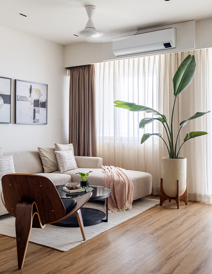“To balance the simplicity of the neutral palette, we have incorporated minimal materials like wood and fabric, adding warmth, texture, and depth to the interiors,” Sujitha says