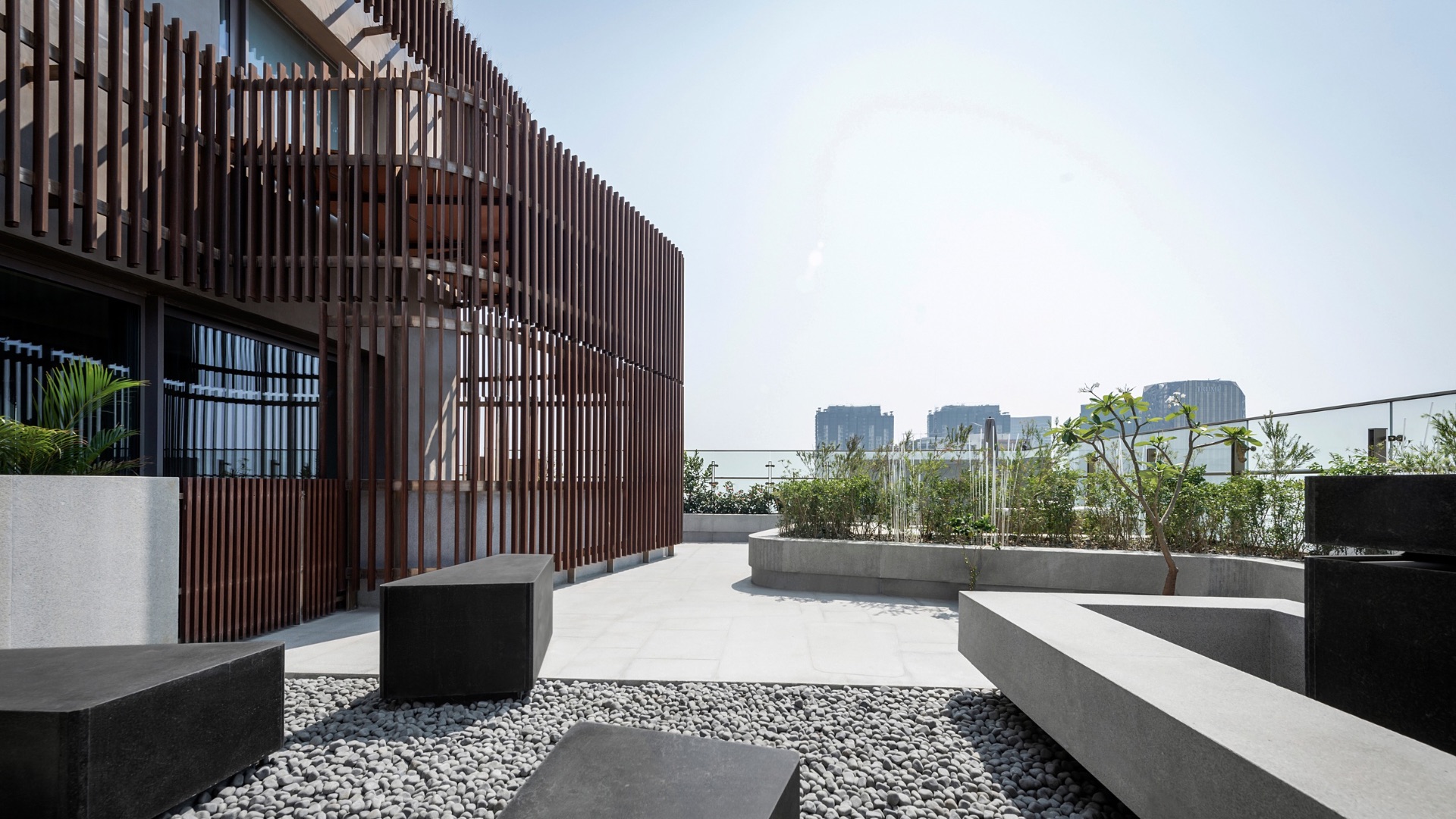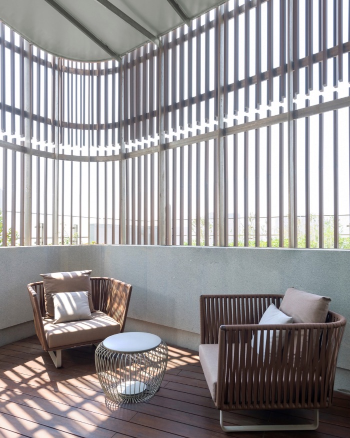 Yes, the terrace. In dense concrete jungles, space is often the biggest luxury of it all. Principal Architects Nicola Gerber and Tiran Driver, in recognition of this fundamental fact, built the penthouse with plenty of spatial variety to choose from. The list? The sprawling rooftop, granting residents an eagle eye view of Mumbai’s skyscraper-dotted skyline (and the opportunity to grow their own produce). Alfresco areas, smushed between the southwest facade and delicate bamboo slats: forming what the architects call the home’s “second skin.”
