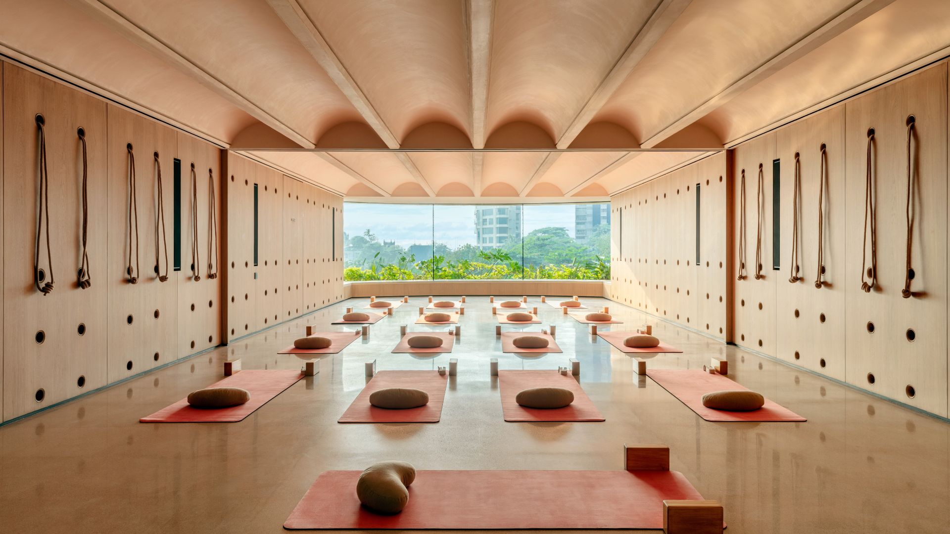 What does it mean to translate a sound into space? At AUM Wellness in Mumbai the idea comes from the continuous vibration of AUM, unfolding as a seamless progression into architecture. In the middle of India’s busiest city, Shefali Balwani, Principal Architect of Architecture BRIO designed this 7,800 sq ft urban ashram as a cohesive sequence of environments. Here wellness is experienced through the rhythm of the layout. The plan unfolds as a continuum moving fluidly between introspective and collective zones. This movement echoes the convergence of A, U and M, translating creation, preservation and transformation into a continuous spatial rhythm.