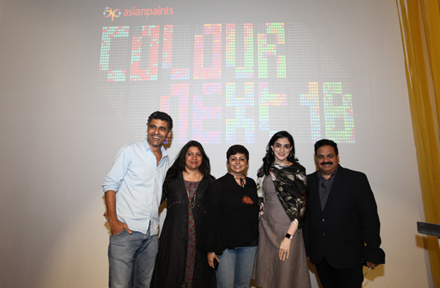 The Famous Studio in Mumbai was a frenzy of lights, cameras and action yesterday, with the launch of the Asian Paints Colour Next Trends of the year. Invite-only guests were taken through a maze of set-ups, featuring the biggest trends of 2018. Slow living and soft tones from the trend #Humane flowed seamlessly into the vintage #AlchemyofMemories set-up. Corporates hustled towards the #BusyCool vibe, while the #Untamed trend stood out with loud colour combinations and almost-offensive moodboards. Guests participated wholeheartedly: Sarah Sham was dressed to in the Colour of the Year: Passion Flower, while Ali Baldiwala struck a pose with his father, Bakhir Baldiwala, at the furry #Untamed installation. Architect Elsie Nanji has a playful moment, swirling on a Roche Bobois swivel chair. A walk towards the light – or the warm yellow glow of the room where four-minute presentations on four trends by Alan Abraham, Pavitra Rajaram, Ashwini Deshpande and Ekta Parekh – was the brilliant finale of the colour launch. Each presentation was accompanied by theatric videos on the trends while COO of Asian Paints, Amit Syngle, played the witty host. Finally, the night ended at the bar, complete with sangrias and the wallpaper of the year by Sabyasachi – the Mimosa.