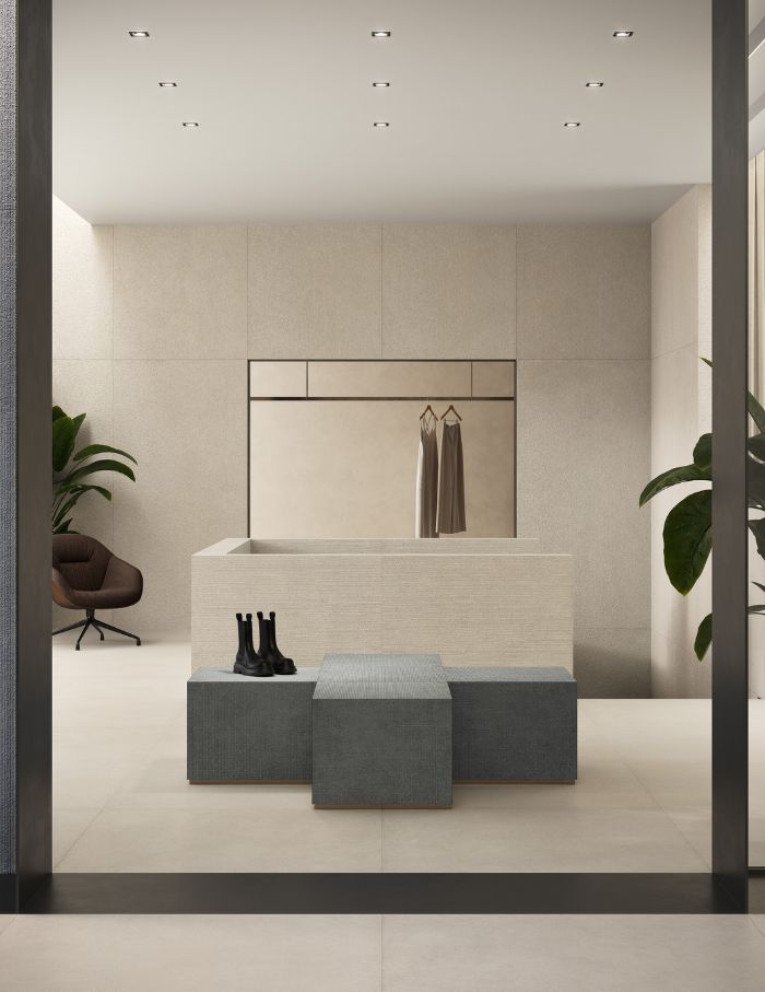 Concrete is a versatile material. Capable of being shaped into any form and carved into beautiful spaces, it possesses a vast structural bandwidth. In a concentrated effort to elevate a space’s tactile experience, RIGA by Nexion utilises laser micro-carving technology to recreate man-made patterns left behind by craftsmen working with concrete.