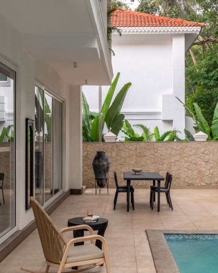 There are moments when a space can evoke a remembrance of places experienced before, without clearly referencing them. It brings to mind the feeling of summer holidays spent at a grandmother’s home during school years. This home in Goa’s Assagao, rather than relying on overt cues, draws from a sense of memory, one that is not displayed but felt through restraint and balance. Designed by Ashna Bhalla of Lasso Design, the 4,800 sq ft residence is a contemporary expression of the couple’s lifestyle that leans into nostalgia with a nuanced approach.