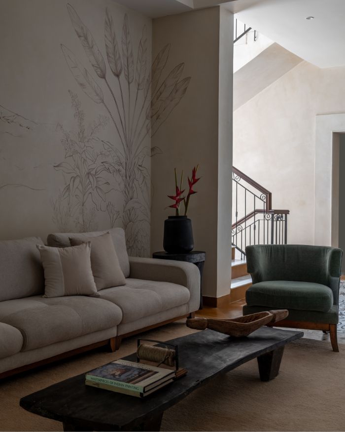 There are moments when a space can evoke a remembrance of places experienced before, without clearly referencing them. It brings to mind the feeling of summer holidays spent at a grandmother’s home during school years. This home in Goa’s Assagao, rather than relying on overt cues, draws from a sense of memory, one that is not displayed but felt through restraint and balance. Designed by Ashna Bhalla of Lasso Design, the 4,800 sq ft residence is a contemporary expression of the couple’s lifestyle that leans into nostalgia with a nuanced approach.