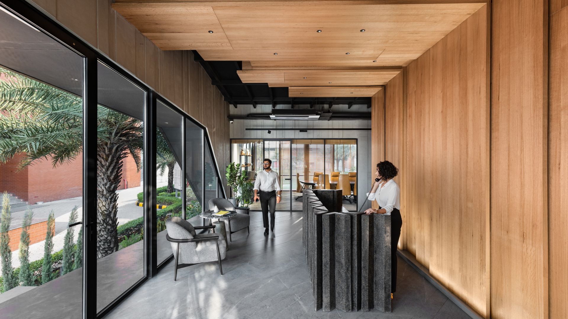 “This isn’t your typical boardroom. Corporate spaces often fall into two extremes; either stark minimalism or glossy opulence. We wanted neither. We leaned into organic geometries and materials that invite touch" — Karan Arora