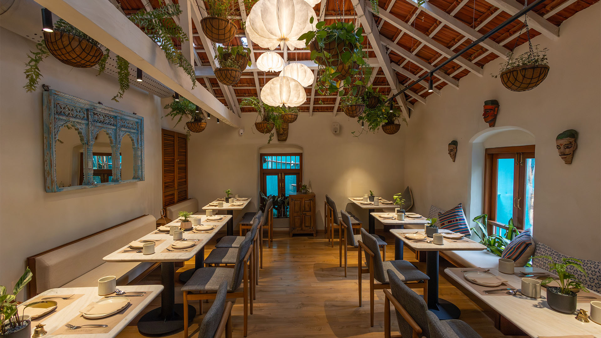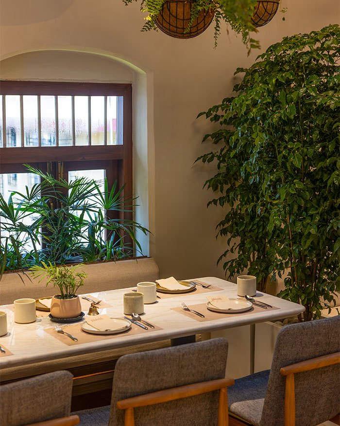True to Satyajeet and Pashmin’s words, Paashh’s ‘soil to soul’ philosophy is evident across both the exterior and the interiors. The menu, we’re told, is seasonal — aligning with the shifting hues of the greens that bedeck the facade. Driven by Founder Vaishali Karad’s vision, the space doesn’t just preach conscious living: it practices, embodies, and teaches the same.