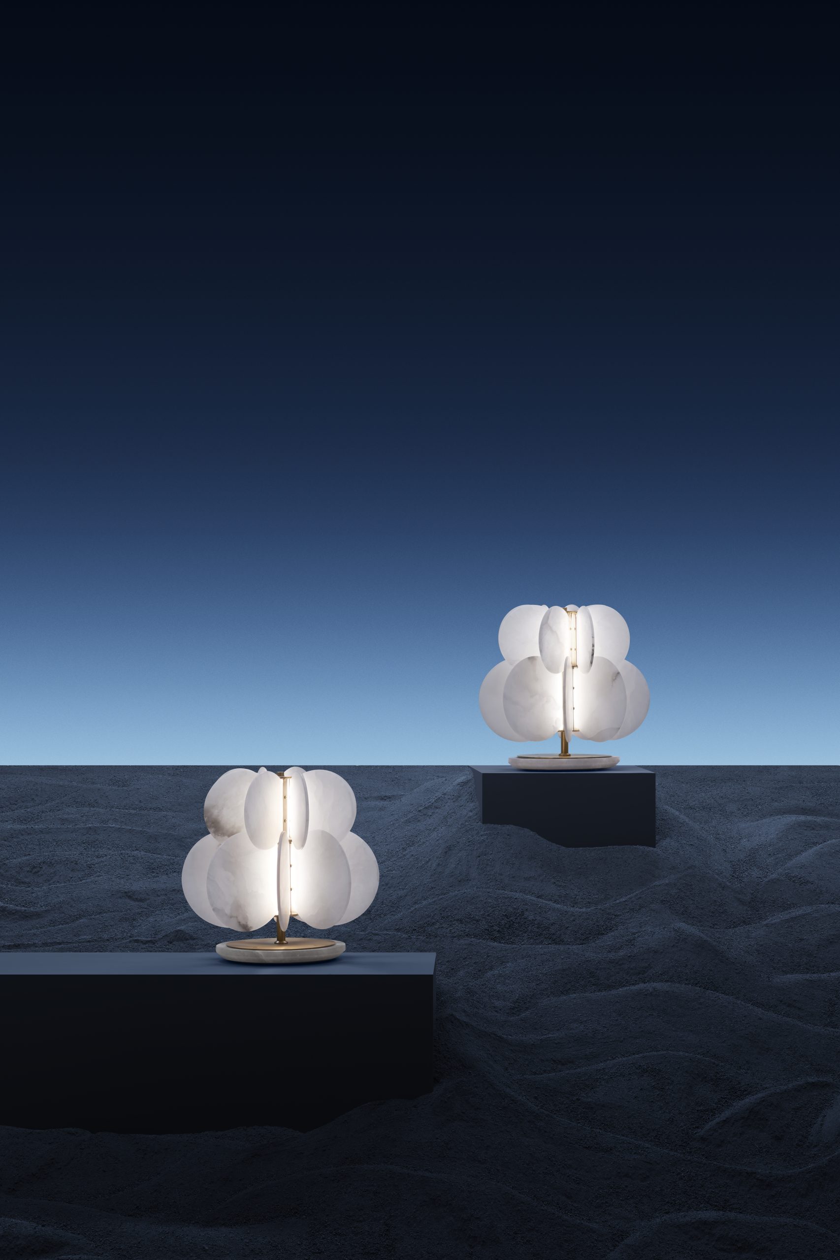 The Anisora collection by atelier oï and White Teak by Asian Paints turn alabaster circles into glowing pods of light. Shaped like star anise, the stone allows gently diffused light from the fixture’s core to emanate outwards, creating a warm, soothing glow.
