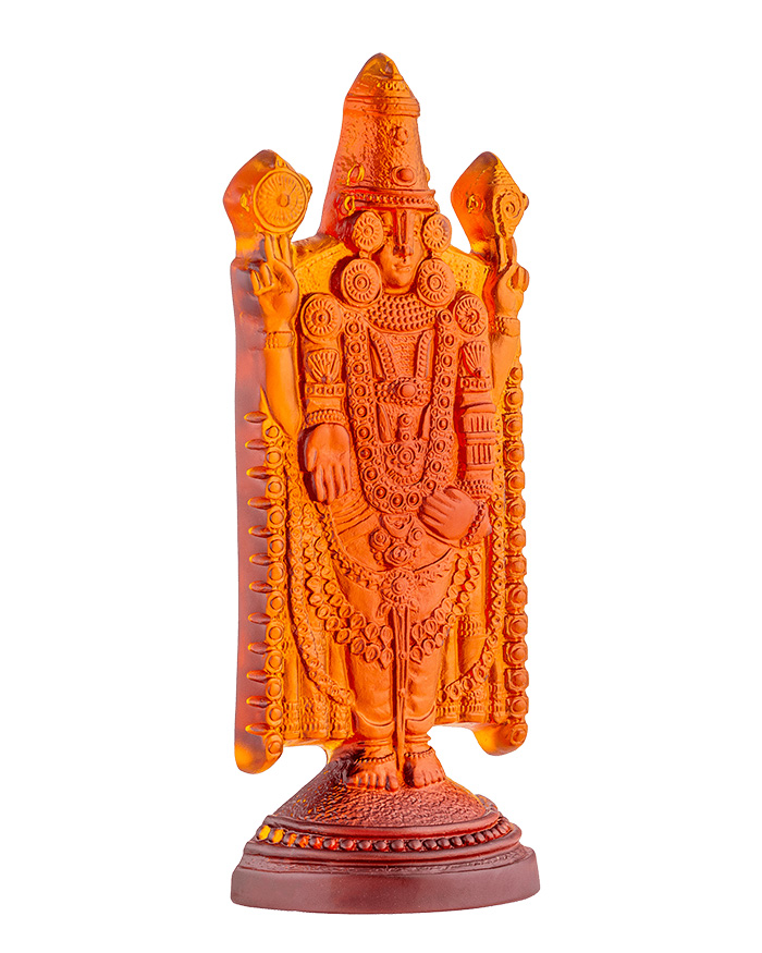 A subtle ombre effect lends this crystal figurine of Lord Balaji a striking, almost incandescent look: captured through a striking mix of red and orange.