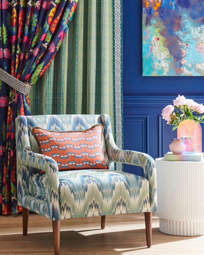 Vibrant shades? Check. Dancing paisleys? Check. This upholstery fabric is a maximalist decorator’s dream, and we honestly wouldn’t blame you if you feel tempted to completely cloak your house in it!