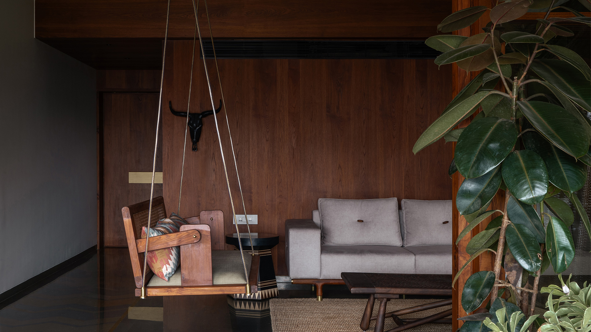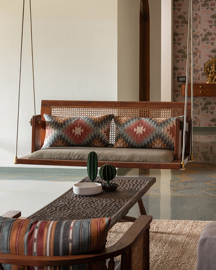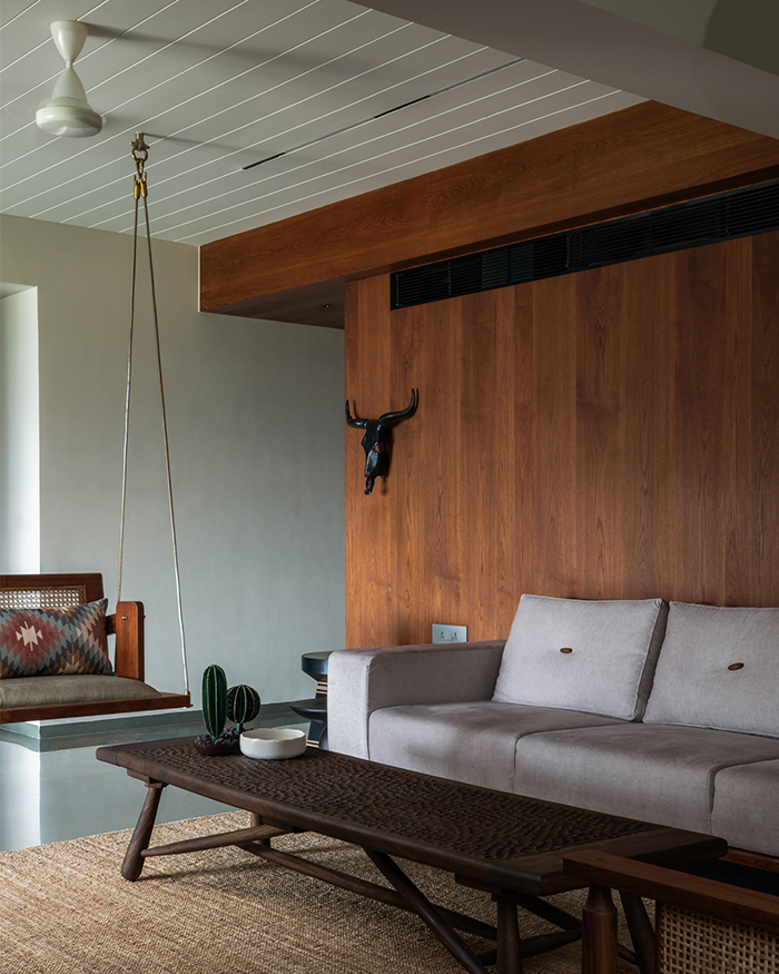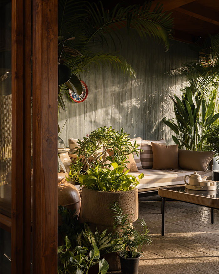 It’s not often that you encounter terms like ‘city’ and ‘getaway’ mumbled within the folds of the same sentence. A paradox of place and escape, this 2,200 sq ft home by Projects 3.14 sits in the midst of a bustling Ahmedabad city. Less house and more mirage in a concrete jungle, the home is akin to an optical illusion of greenery, wood and playful details. “The core idea was to reimagine ‘escape’ not as distance, but a shift in atmosphere,” begin Noopur Shah and Chinmay Patel, co-founders of the design studio.