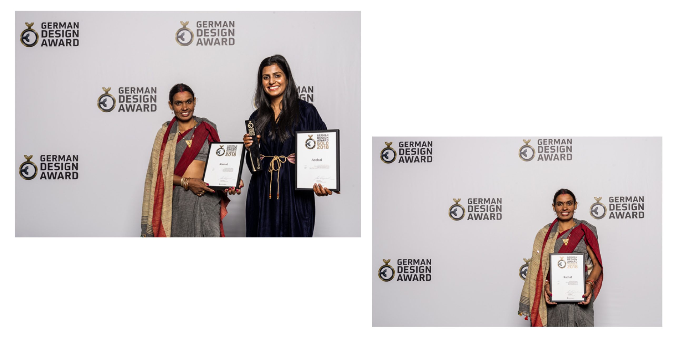 Jaipur Rugs, through the launch of the Artisan Originals line has provided a platform for weavers to test and express their creativity in the form of a one-off rug. Weaver turned designer Bimla Devi, created the rug, Kamal, drawing inspirations from her day-to-day life. She started weaving before being married to help sustain her family, but kept weaving long after, simply because she loved it. Weaving has helped keep her spirits high as she went through tragic moments, and now it’s brought her to new heights, literally. Going from Aaspura, Rajasthan to Frankfurt, Germany, she has walked on stage to collect a 2018 German Design Award for her rug, Kamal, alongside our design director, Kavi, who also collected a 2018 GDA Gold Award for her Asthai rug. Bimla Devi has now entered a club reserved for some of the world’s best designers. Through sheer perseverance and talent, she stands as an inspiration for her village, the weaving community, and artisans worldwide.