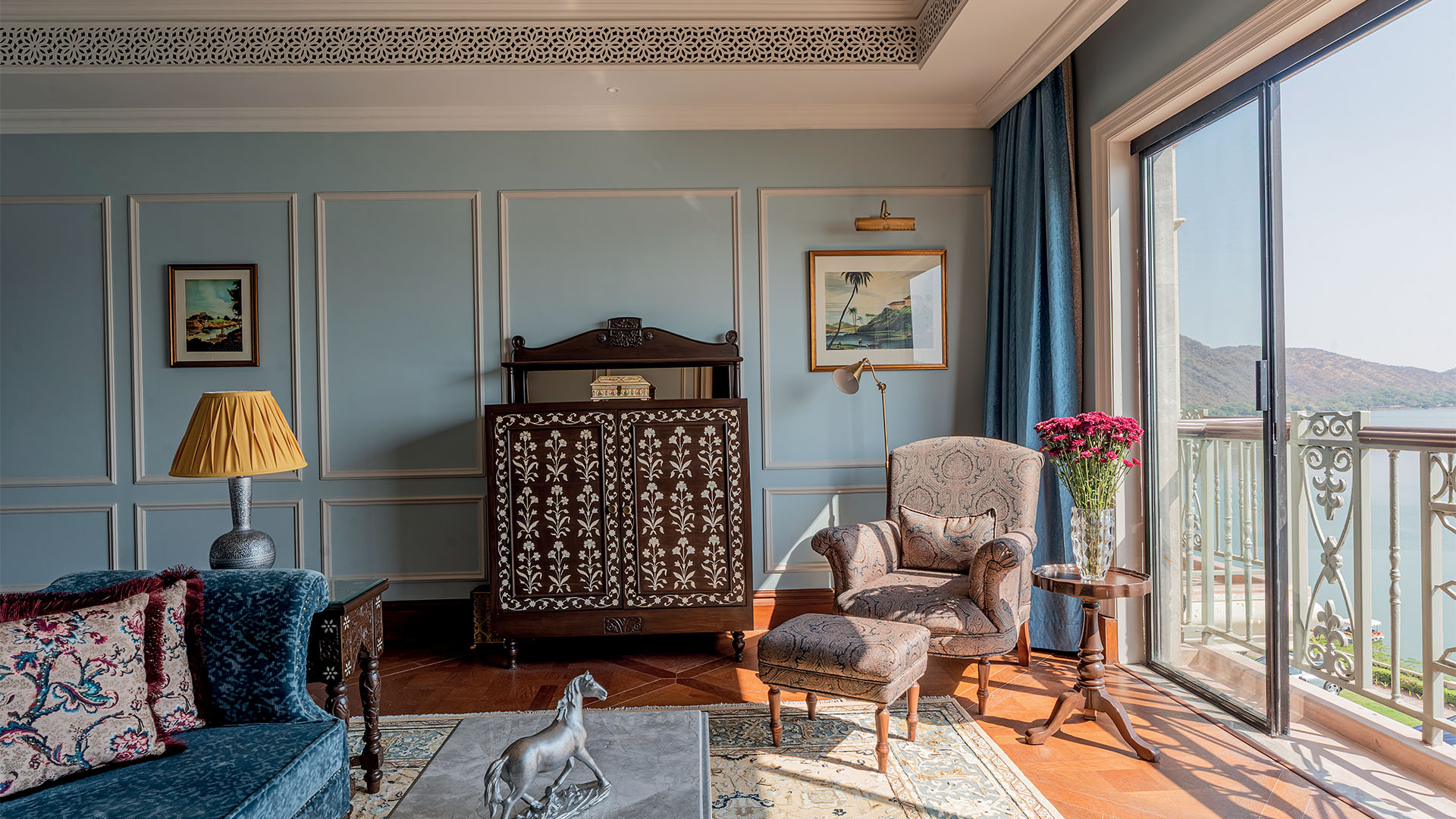 There’s something quite rebellious about a hotel that chooses restraint over spectacle in a city like Udaipur. In a city famed for mirror-work palaces, cinematic rooftops and ornate exuberance, Raffles Lakeshore Udaipur is located on the quiet banks of Udai Sagar Lake. Overlooking the majestic Aravallis, it is a counterpoint to its island sibling (Raffles Udaipur), which opened in mid 2021. Featuring 36 rooms and suites, Raffles Lakeshore draws from Rajasthan’s artisanal traditions: wooden fretwork, delicate frescoes and hand-painted motifs paired with natural stone and pale textiles. There’s a Great Hall with chandeliers and painted ceilings, a rooftop bar with sunset views, and a tea room that reimagines the classic Raffles ritual with Indian elements. The Tea Room offers a more intimate scale, with upholstered seating and views designed for slowing down. The Marble Hall leans into European finish with its polished surfaces and The Belvedere, perched on the rooftop, is where golden hour unfolds with shared plates and horizon views. Measured, composed and entirely sure of its place, Raffles Lakeshore Udaipur lets the details speak.