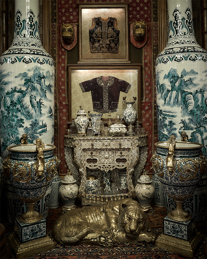 Sabyasachi’s flagship Mumbai store is home to a vast curation of antiques and artworks from across the world, some of which have been created and restored by the Sabyasachi Art Foundation. The designer’s couture creations, ready-to-wear collections, accessories and high jewellery pieces occupy pride of place; Photography by Björn Wallander