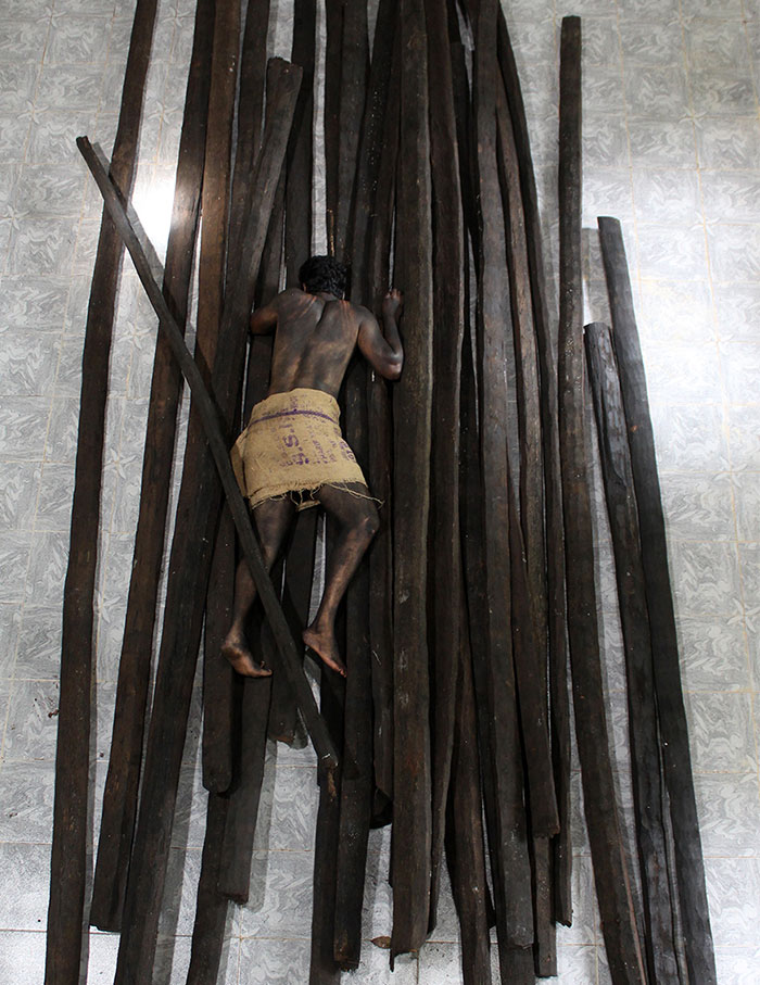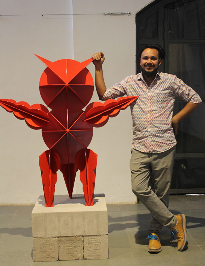 In his current practice as a sculptor, the Andhra Pradesh born and Baroda based artist attempts to achieve forms that are minimal in structure yet have a pertinent geometrical language, which lets him place his critique of societyβs perspective on the labour class. The winner of the National Scholarship from the Ministry of Culture, India has participated in shows in India and South Korea.Most recent showcase: Indo Korean young artist exhibition by InKo Centre in Seoul.
