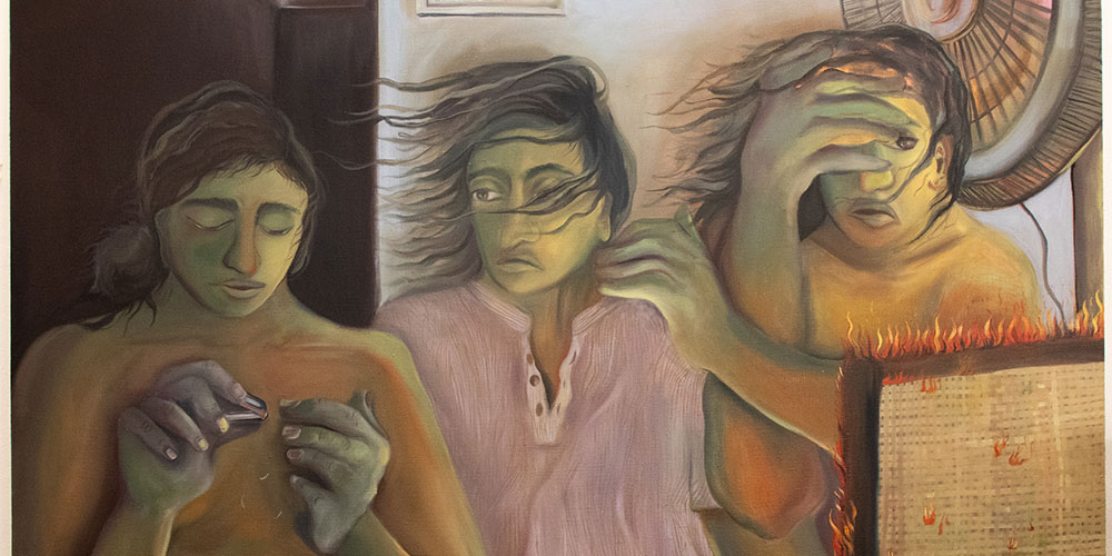 The Indore bornβs artistic practice stems from an ongoing dialogue between the personal and the political through an extrapolation of memory and nostalgia into a larger context of history, mythology and contemporary society. Mehtaβs work investigates conversations involving familiarity, otherness, alienation, intimacy and awkwardness through paintings, drawings and printmaking. She finds inspiration in fiction that spreads through cultures as superstitions, childrenβs stories and religious mythology in India.Most recent exhibitions: Space 118 Residency in 2019.