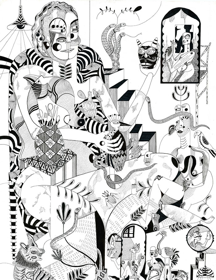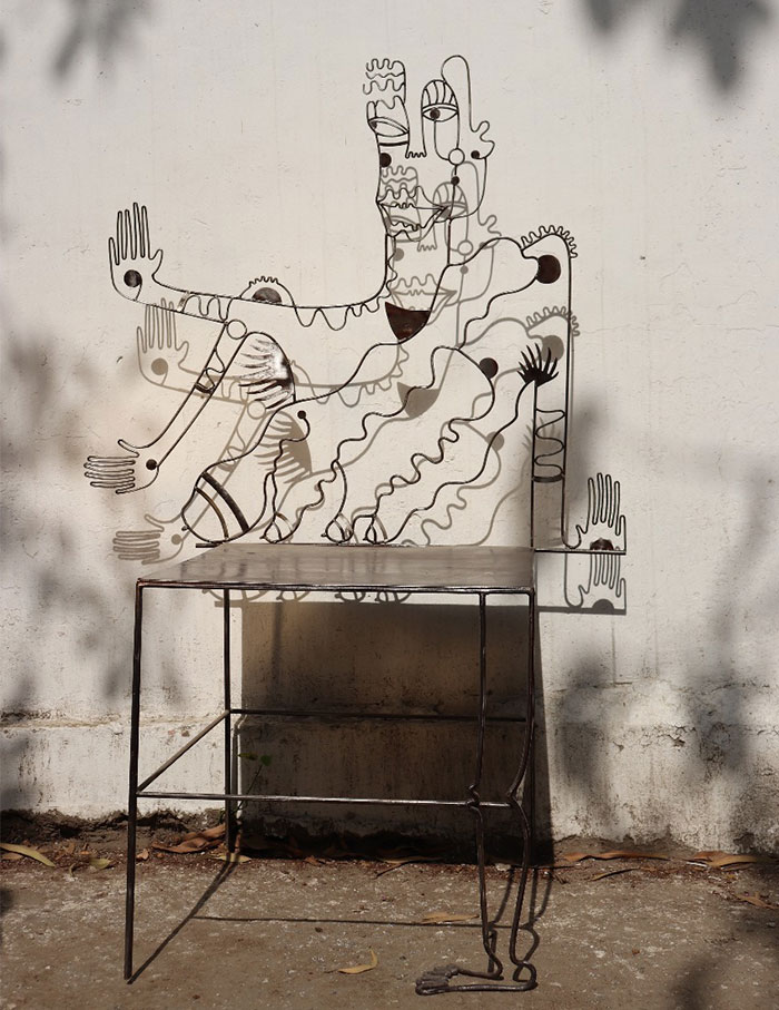 Exploring themes of human intimacy, the Delhi based artist tries to break the taboo of body consciousness and sexuality. Her work revolves around a utopic world, where one can live free and equally. She finds inspiration in folktales, architecture and even, modern day politics to create drawings on paper and iron installations. She is also the founder and curator of the Irregulars Art Fair.Most recent showcase: βVoices of Womenβ curated by Teesta Bhandare.