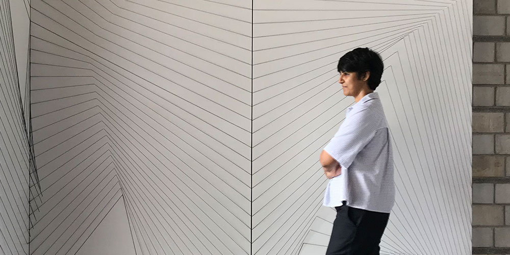 Her work centres around architectural spaces as generators of perceptual experiences by countering the question of perceptionβof how a particular place informs the way we see. Ways in which spatial interventions changes our perception of each individual space as well as our perception of ourselves in that space. These are expressed through drawing on paper, sculptures, installations, site conditioned and drawing in space. Most recent showcase: βSpace; underscoreβ, presented by Farah Siddique Khan & Team Red at Red Studio, Mumbai.