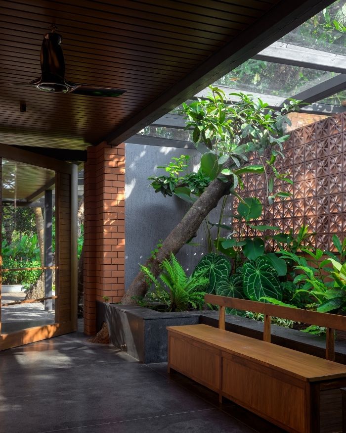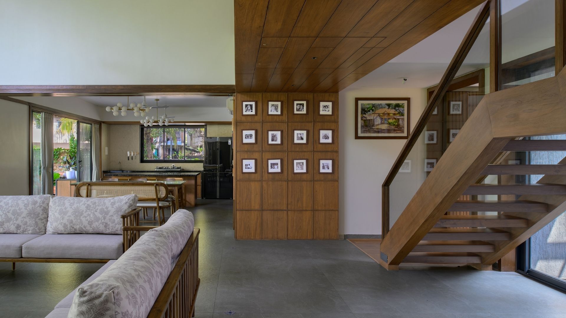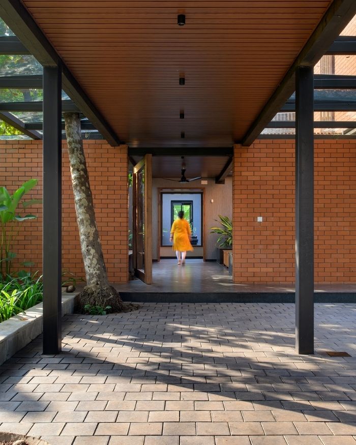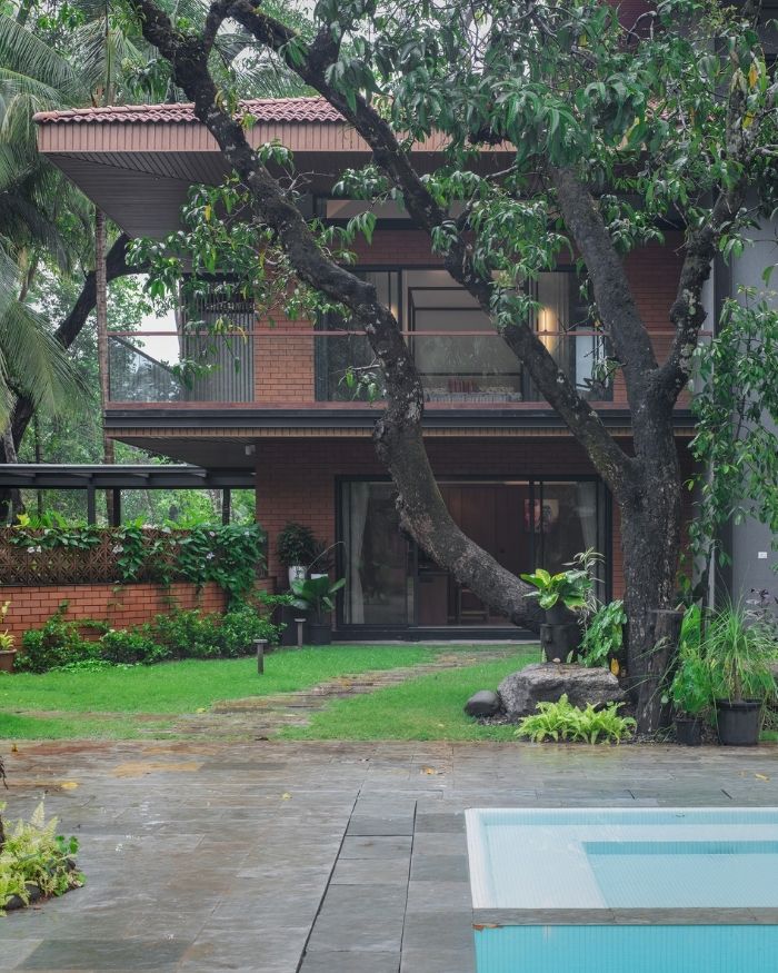Studio Massing plucks cues from this very landscape to build a 5,000 sq ft home. For its roof, it looks no further than the terracotta-tiled roofs that crown its neighbours. Brick for its walls, save for the occasional glimpse of grey concrete that abounds in its neighbouring cities. Hues that mirror the lush topography, the gravel, the very earth that Sawantwadi calls its own. The home melds the best of the past with amenities from the present, standing tall as a beacon of the future.