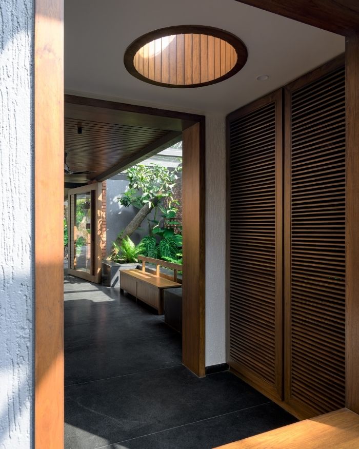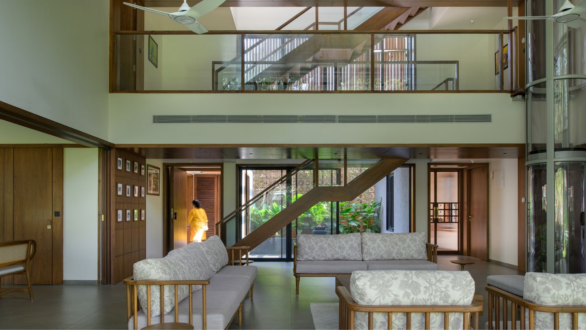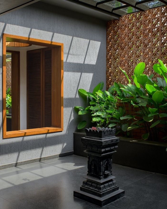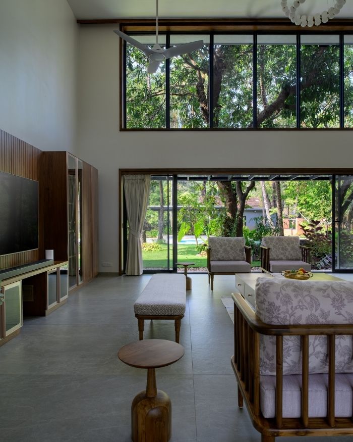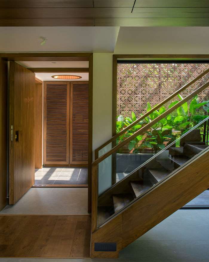 Studio Massing plucks cues from this very landscape to build a 5,000 sq ft home. For its roof, it looks no further than the terracotta-tiled roofs that crown its neighbours. Brick for its walls, save for the occasional glimpse of grey concrete that abounds in its neighbouring cities. Hues that mirror the lush topography, the gravel, the very earth that Sawantwadi calls its own. The home melds the best of the past with amenities from the present, standing tall as a beacon of the future.