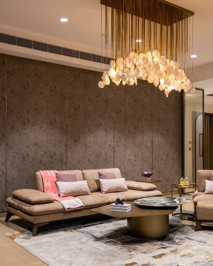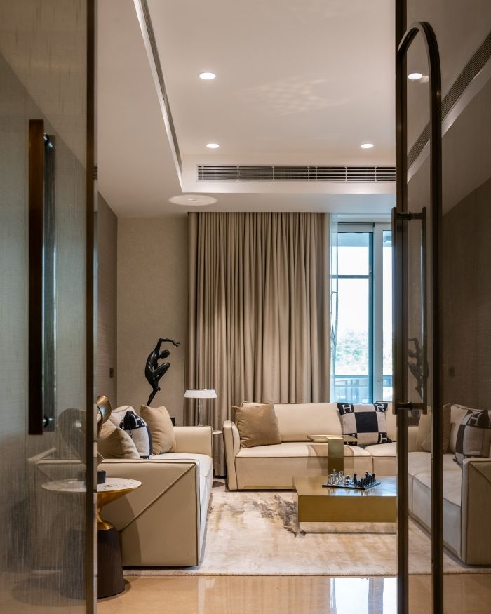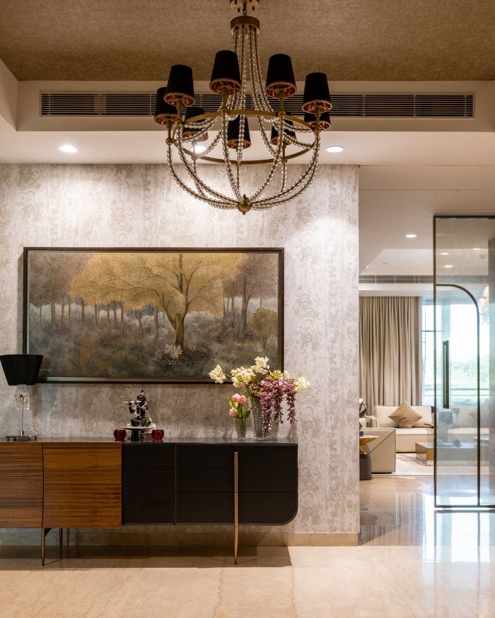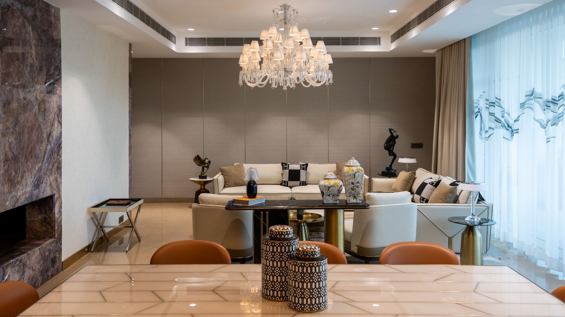 What remains to be said about one of the country’s most sought-after residential addresses? With lush views of the rolling golf course, sweeping vistas best savoured from its soaring towers, and premium amenities that leave one spoilt for choice, luxury isn’t merely offered at DLF Camellias — it is the very standard upheld. However, what must be the distinction between a home that speaks of opulence and one that spells a warm welcome? Essentially, a home that embodies presence, not just prestige. Architect Sumati Aggarwal, Creative Head at Studio Arc.S, translates this sentiment into form and feeling with seasoned perspective at Elite 402, a 4,300 sq ft apartment in Gurugram.