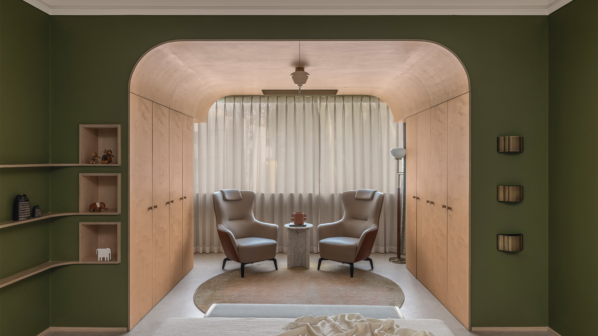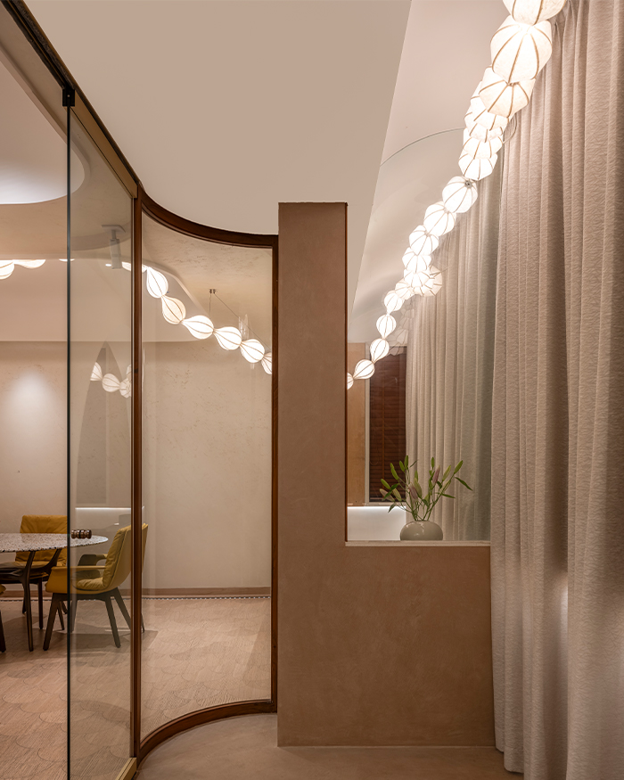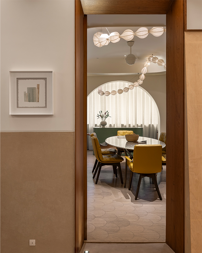 Chiaroscuro is an apt prelude to this Mumbai home which is a game of hide and seek not only with light and darkness but with form itself. A serpentine ribbon of light moves across the ceiling, casting a warm presence that envelops a senior couple and their staff into a three bedroom apartment.