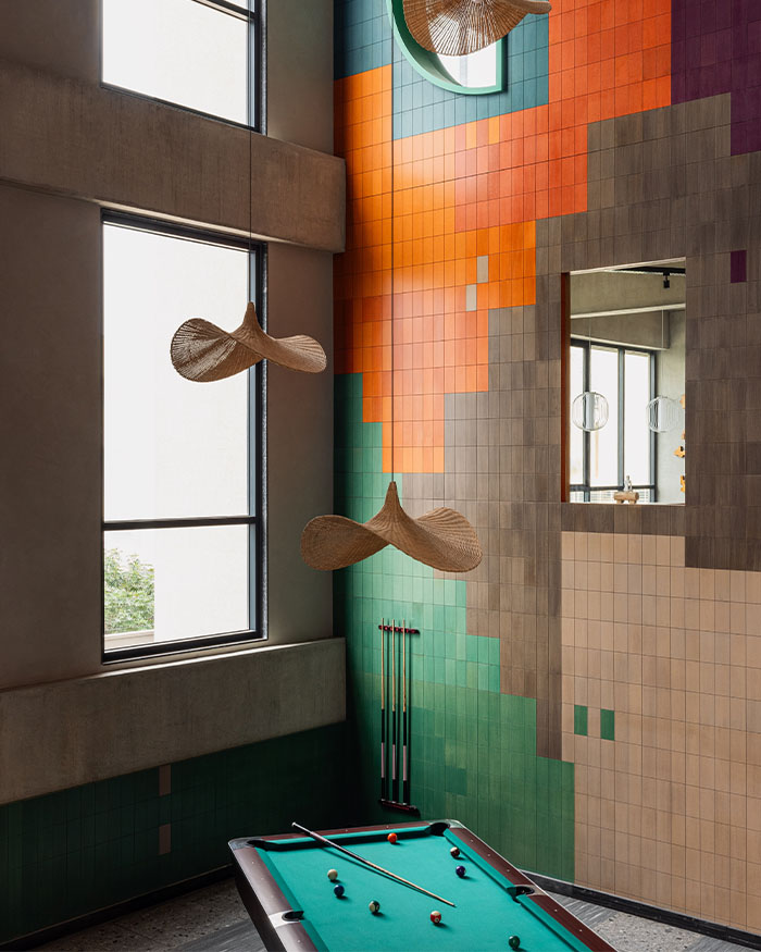 The 15,000 sq ft clubhouse sits inside Goyal & Co.’s Orchid Piccadilly residential complex. Having already built the Fields Club for the same developer, the design team knew the brief well. “The intent for the second project was to firmly establish their brand promise by converting it into a repeating experience yet clearly distinguished from the first, both visually and in flavour,” they explain. The challenge was creating a leisure hub for families of every age group without making it feel predictable.