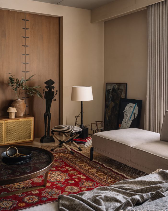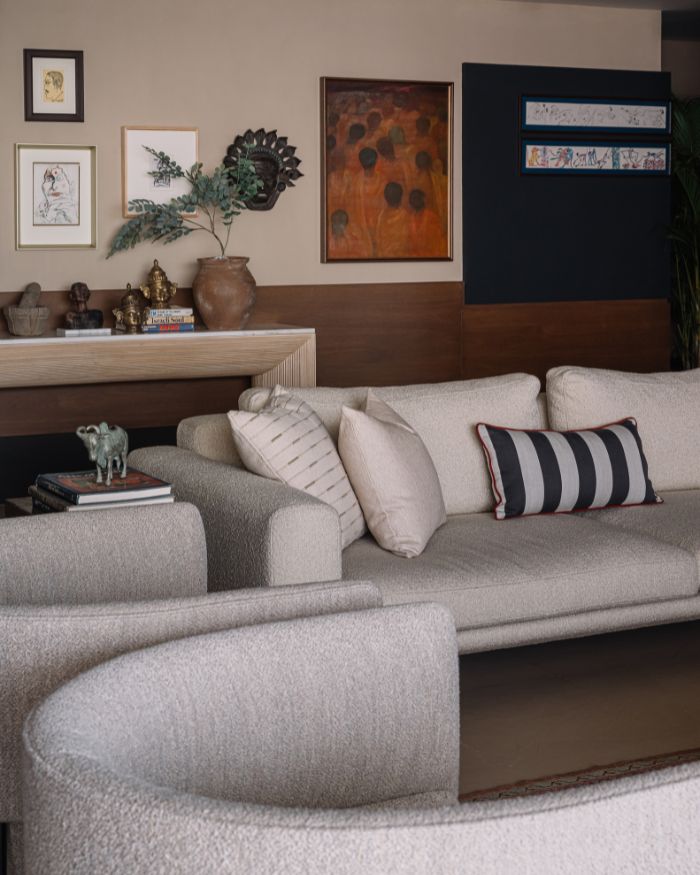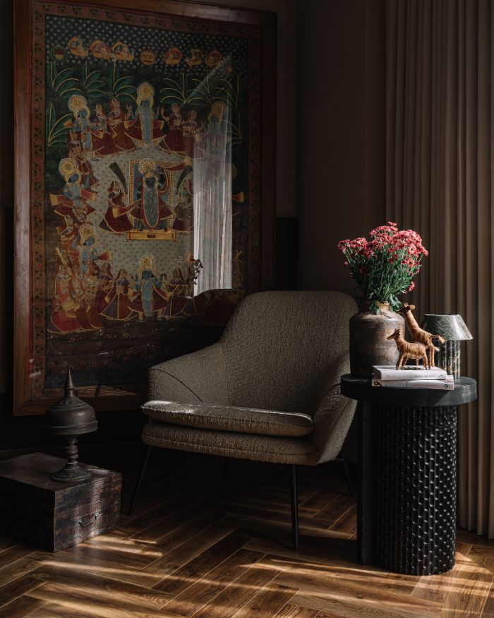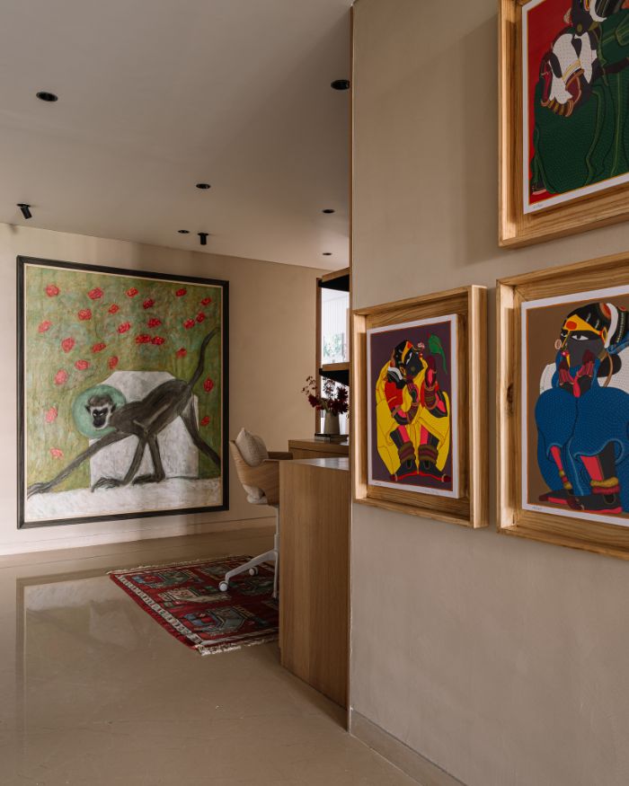 “We explored how art could shape the atmosphere, how texture and light could echo the brushstrokes of a painting or the form of a sculpture. Slowly, the space began to evolve, not as a canvas for art, but as art itself” — Parthavi Patel