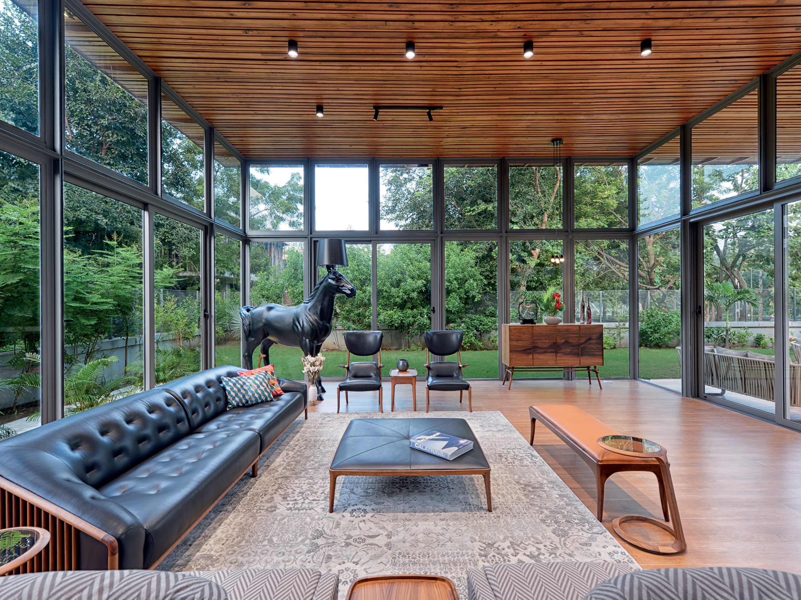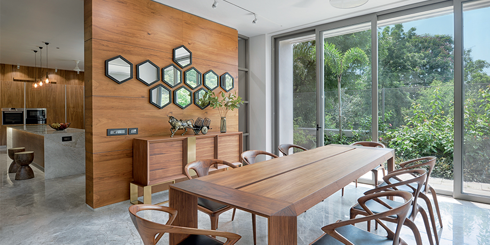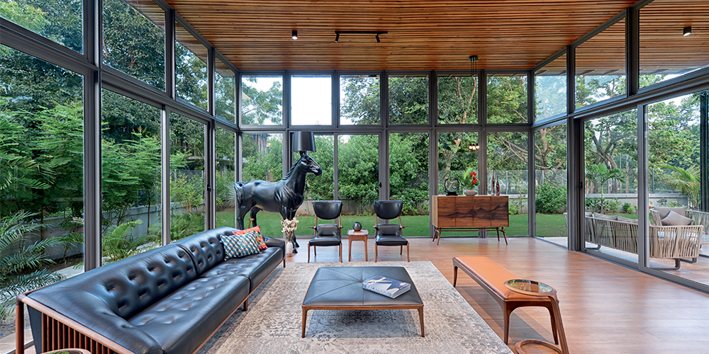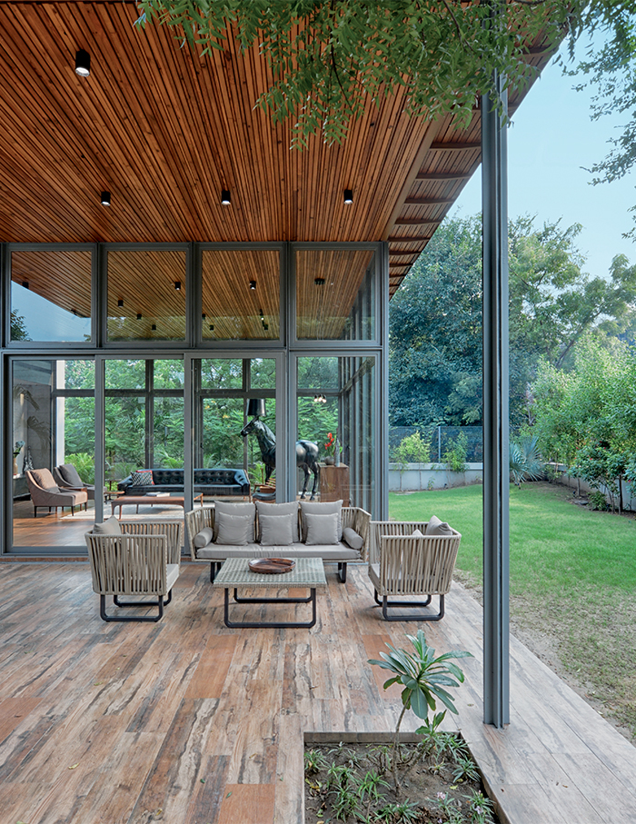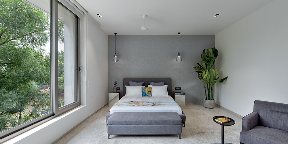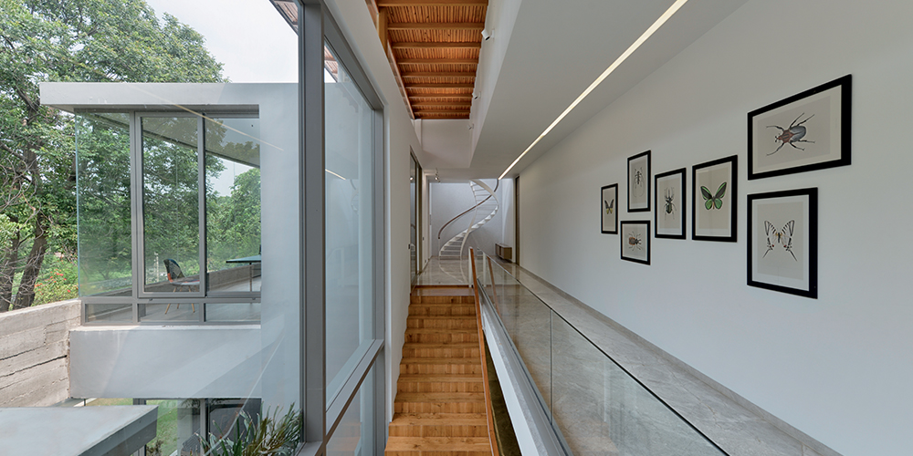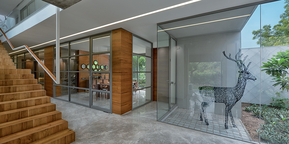 When I design a home, the surrounding natural environment is always my first priority. I used the same approach while planning this 7,000 sq ft residential project in a small gated community in Ahmedabad, nestled among dense neem trees.