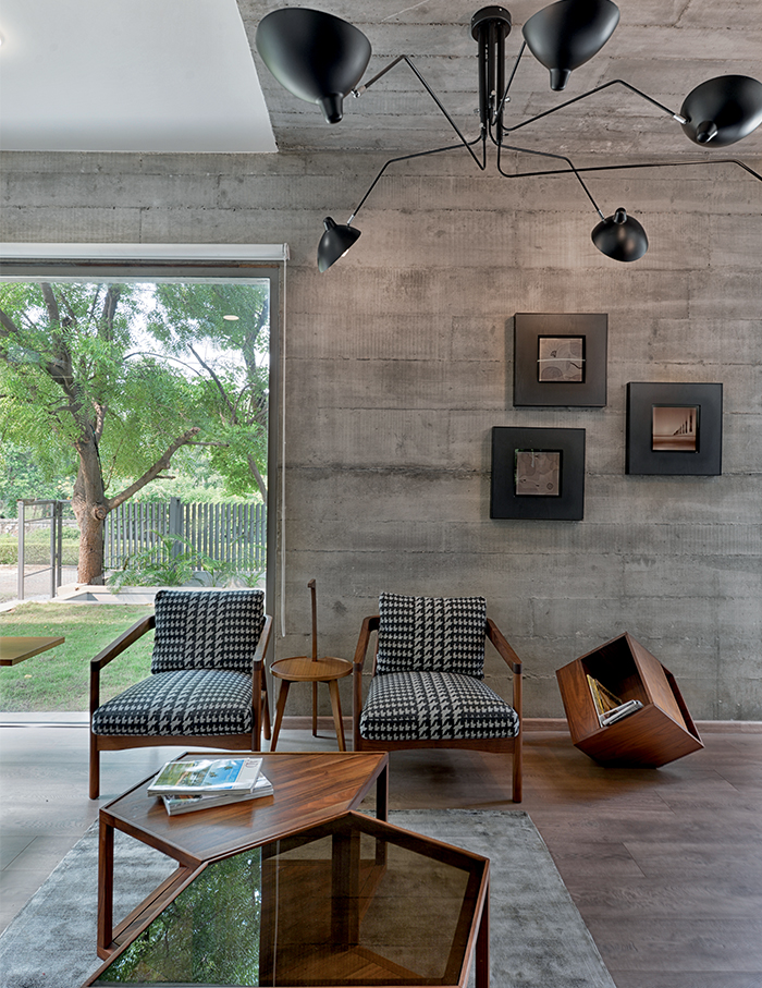 We’re strictly minimalist in our meticulous design approach and pay more attention to the overall structure and its natural environs. Therefore, the material palette is subtle, with a consciously restrained use of marble, wood, glass, concrete and painted walls. The raw concrete looks envelopes the outer facade and continues inside, lending the house a refreshingly unique character.