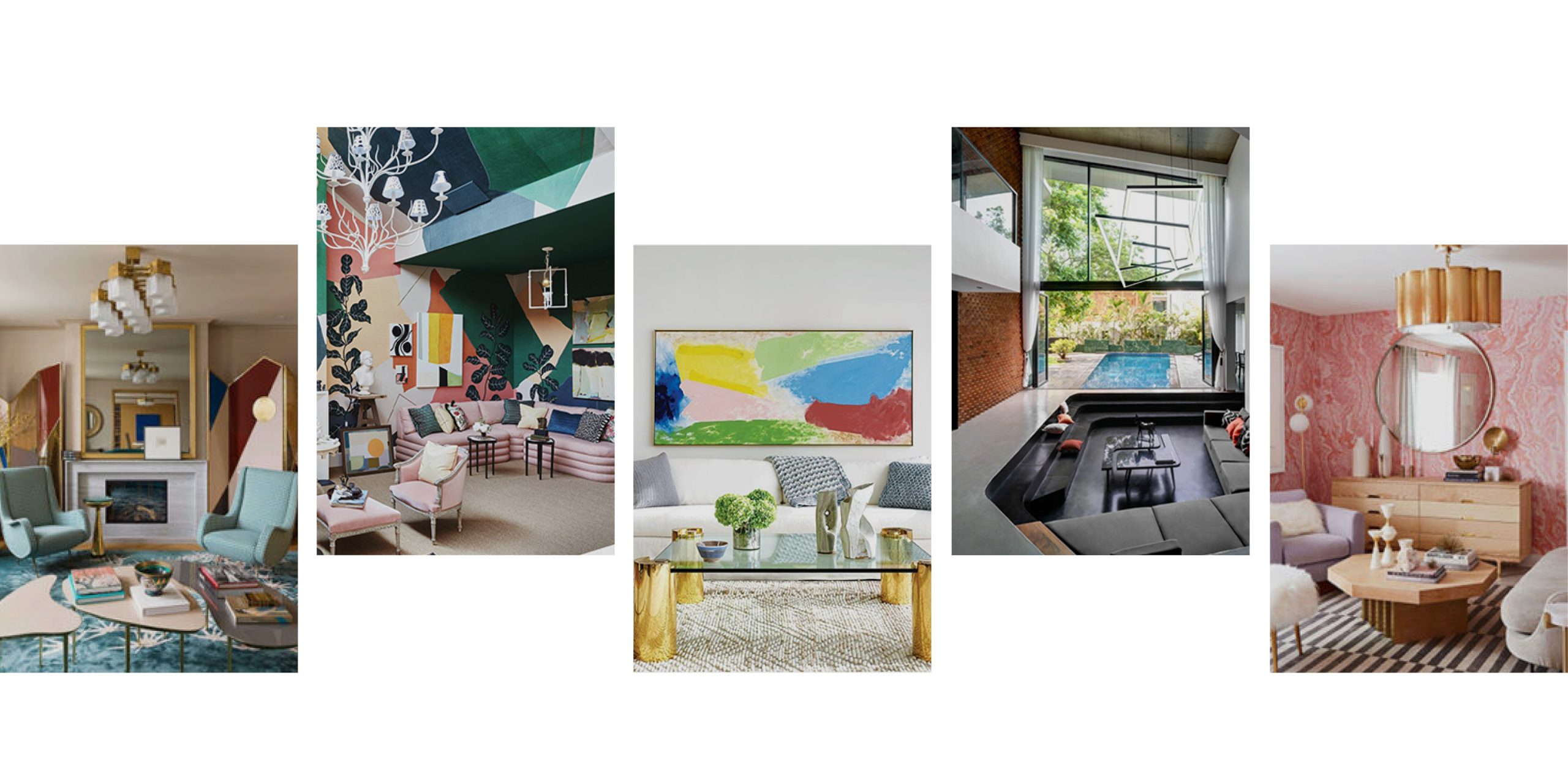6. If you love colours and like quirky spaces then this living room design is just the place you were looking for. The walls double as a canvas of colourful abstract art with a fluted bubblegum pink sofa set and two small black wooden tables in the foreground. The simple texture of the neutral-toned floor balances the vibrant walls. A bold, white retro lighting fixture hanging from the ceiling contrasts the colourful palette of the space and is hard to miss. Reposted from @chairishcoPhotography by @minh_ngoc