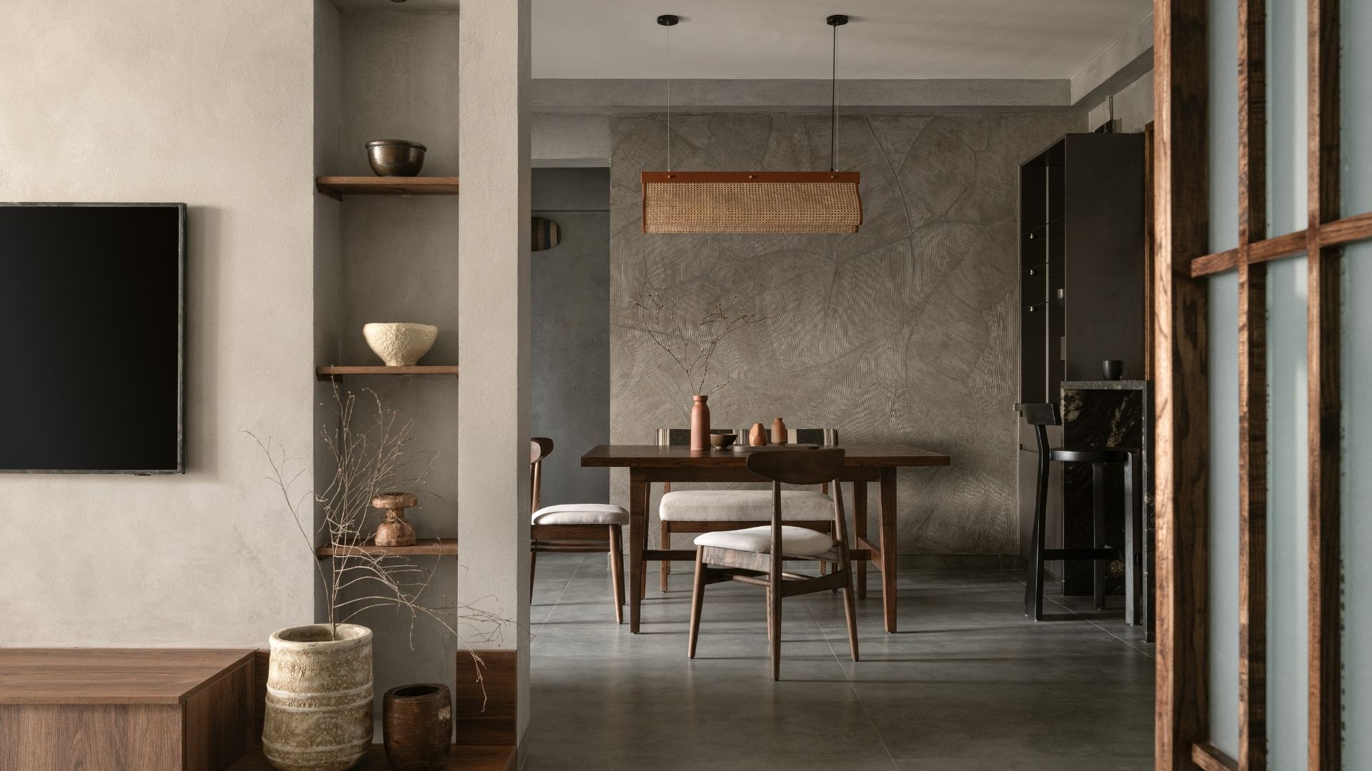Nothing is quite what you would expect at this Bengaluru home. Handmade bowls with uneven edges, weathered vintage books and a raw block of wood. These were amongst an eclectic mix of items presented by the family to The Design Collaborative and Spaceflux Homes. It was from these curated pieces that the studio envisioned a uniquely tailored home, stemming from the homeowners’ love for travel and infused with a sense of their Southeast Asian upbringing.