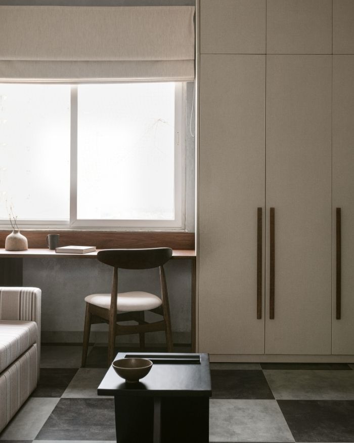 This home truly is where their heart is. A 1,000 sq ft expanse of material richness and artisanal touches, the space seems to simmer with an unimposing charm. “Their affinity for the imperfect and the poetic, combined with their nuanced oriental sensibilities, led us to explore the philosophy of wabi sabi, a celebration of imperfection, impermanence and authenticity,” explains Ramitha Anand, principal architect at The Design Collaborative.