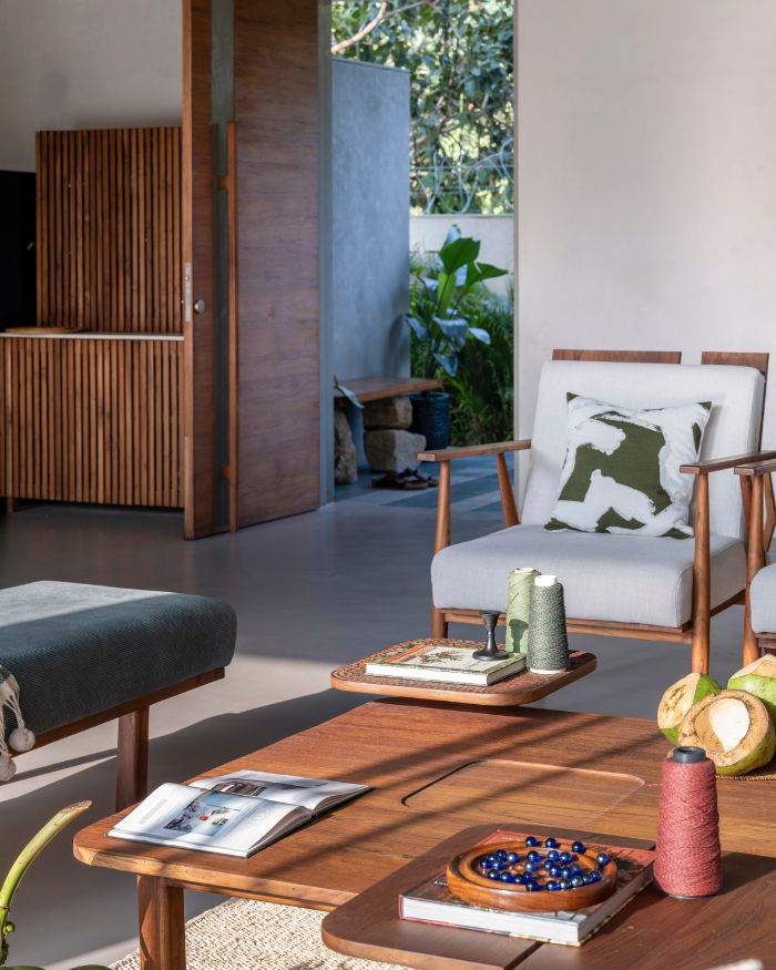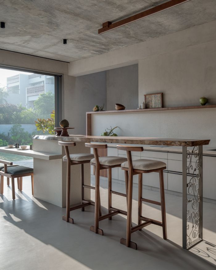 Farmhouses for years have signified retreat. Places we escape to when city life becomes too loud. Designed by Hritvi Sheth and Aanshi Sheth from The Design Lane, this farmhouse is not an escape but more like a way of living. Located in Rancharda, Ahmedabad, with a 2,610 sq ft area, the farmhouse is an equilibrium between the two worlds, of noise and quietude. Equilibrium here isn’t just about city versus countryside, but it’s about the people too. Because it isn’t a place where you run away, it’s where you find your balance. There’s an ease in how this space functions; not just as a weekend home but also as a place for social gatherings. This place was built exclusively around the idea of inclusivity.
