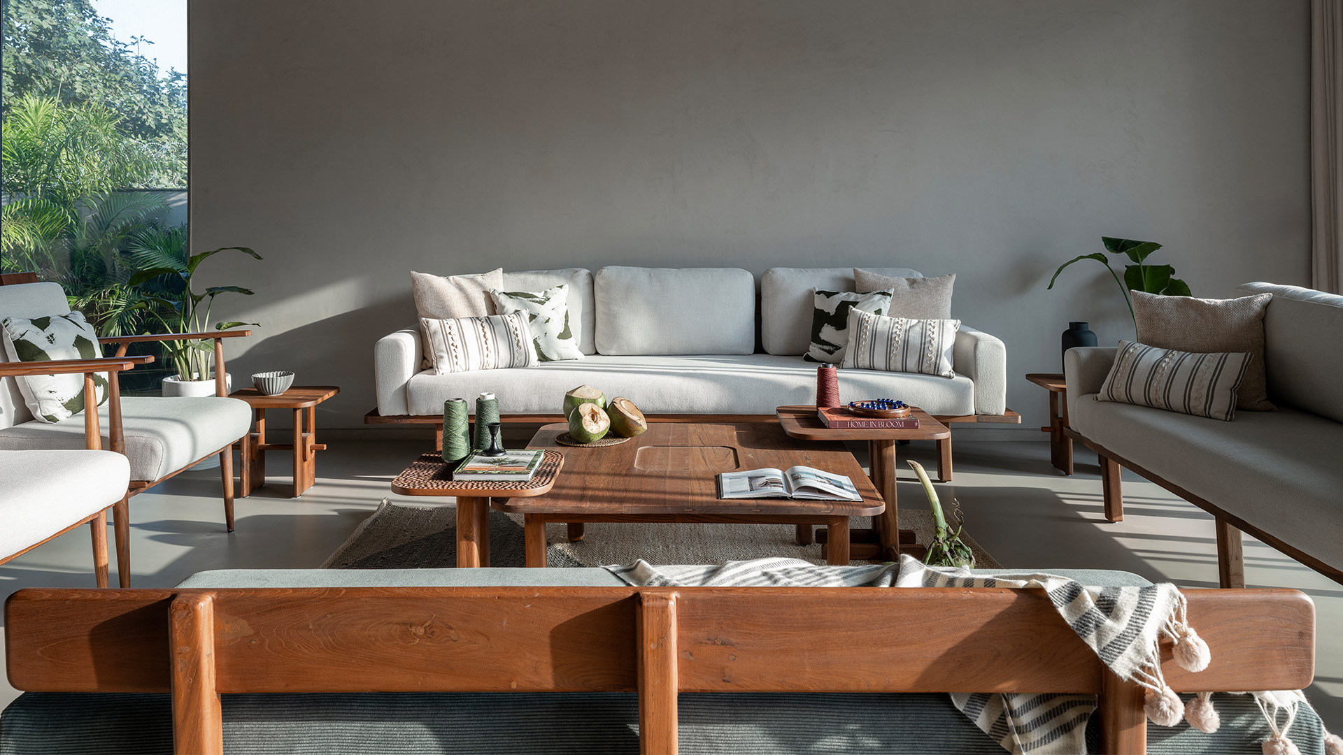 Farmhouses for years have signified retreat. Places we escape to when city life becomes too loud. Designed by Hritvi Sheth and Aanshi Sheth from The Design Lane, this farmhouse is not an escape but more like a way of living. Located in Rancharda, Ahmedabad, with a 2,610 sq ft area, the farmhouse is an equilibrium between the two worlds, of noise and quietude. Equilibrium here isn’t just about city versus countryside, but it’s about the people too. Because it isn’t a place where you run away, it’s where you find your balance. There’s an ease in how this space functions; not just as a weekend home but also as a place for social gatherings. This place was built exclusively around the idea of inclusivity.