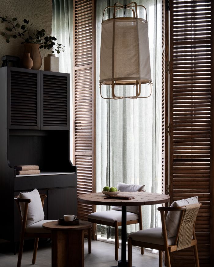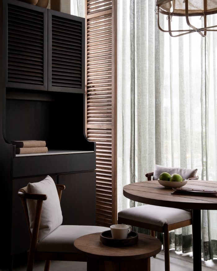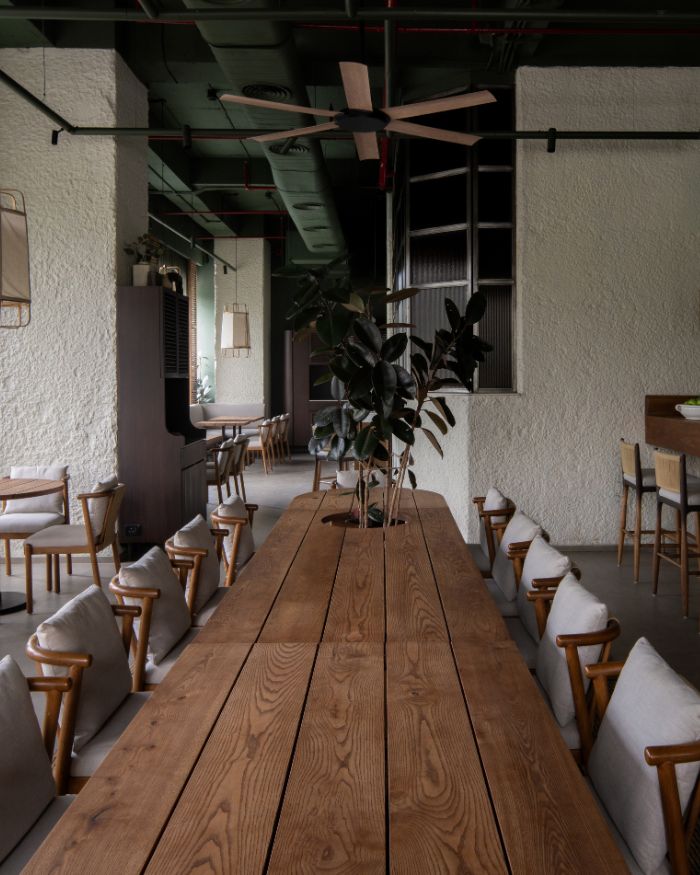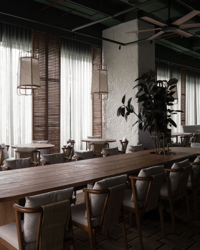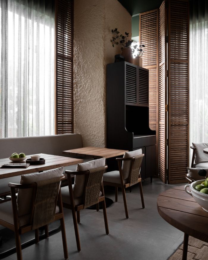 EDIDA winner Vritima Wadhwa of Project 810, the designer behind The Fio Table, describes it as an “intimate home.” Light filtering in, a play of textures and exposed materiality. An honest expression runs through the 1700 sq ft restaurant. “The initial discussions were centred around creating a space that felt personal and soulful, where dining felt like a celebration of togetherness,” expands Vritima, who is also the Design Principal at Project 810.