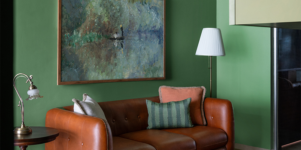 The interiors are wrapped in muted pastels and earthy tones, drawn from the subtle hues of Monet’s artworks, from pale pinks and soft lavenders to warm, faded greens.