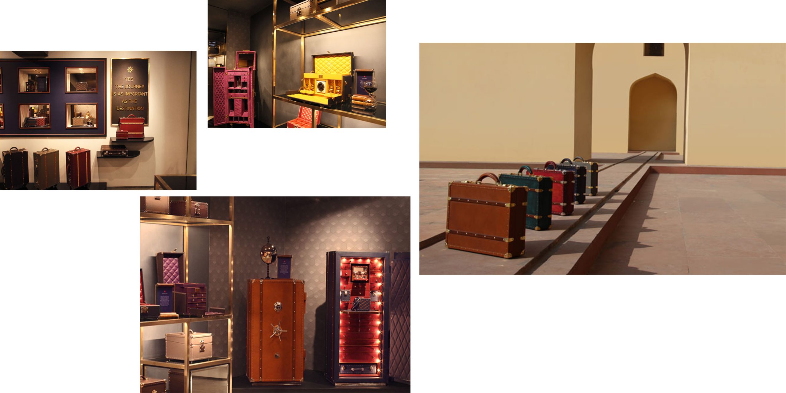 ELLE DECOR travelled to the Pink City for the opening of the Trunks Company’s flagship boutique, overlooking vintage cars and manicured lawns with peacocks, at the historic palace hotel.Gleaming metallic letters above the doors match the leather trunk displays, while inside, the brand’s signature colours of navy blue and coral invite you into a space filled with treasure trunks of velvet and leather craftsmanship. “Jaipur has always been at the heart of everything we’ve done,” says Paritosh Mehta, one of the partners of Trunks Company, who grew up in the Pink City, with his brother and co-founder Priyank Mehta. “It started as a love affair with Rajasthani crafts six years ago, and it has remained a luxury interpretation of our fascination with tradition,” he says, while pointing to the extravagant collection of barware trunks. The store featured their latest collection of colourful travel trunks, miniature jewellery boxes and clutches amongst trunks for watches, shoes and more. Check in your bags at the Rambagh Palace, but travel home with luggage from the Trunks Company.