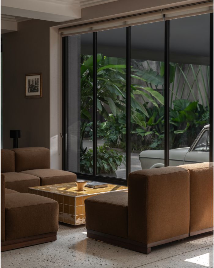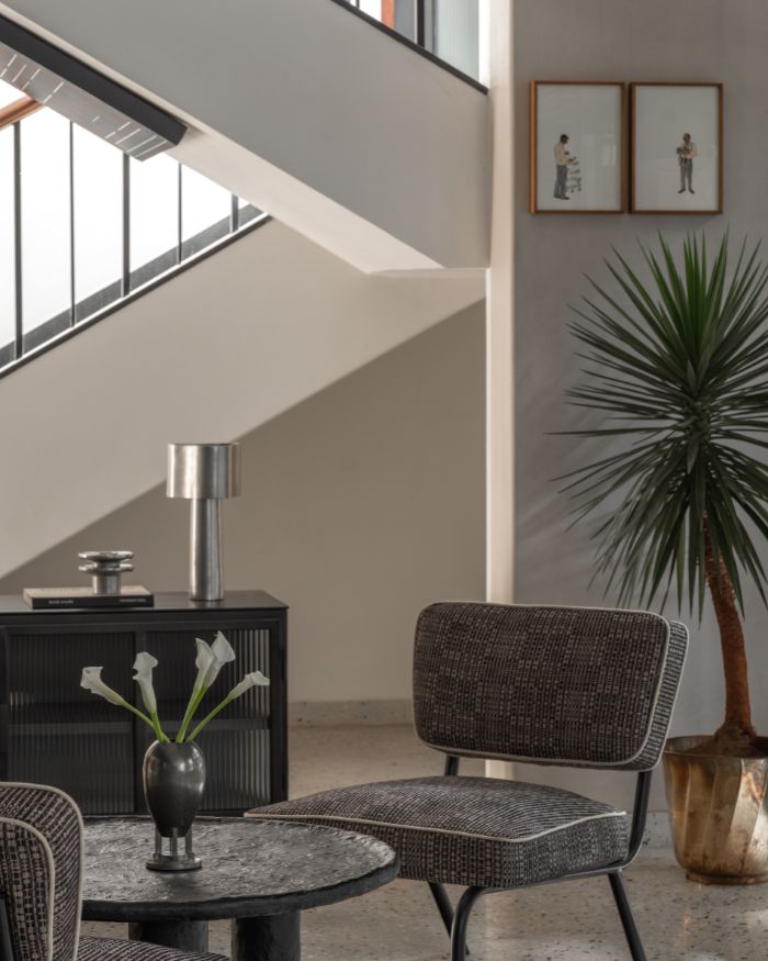 Pune’s climate rarely leans into extremes, where soft suns, cool evenings and just enough to invite you outdoors again. The backyard of this hotel opens through the French doors and is reimagined as a planted alfresco courtyard, where black Cuddapa stone grounds the space while greenery softens the edges.