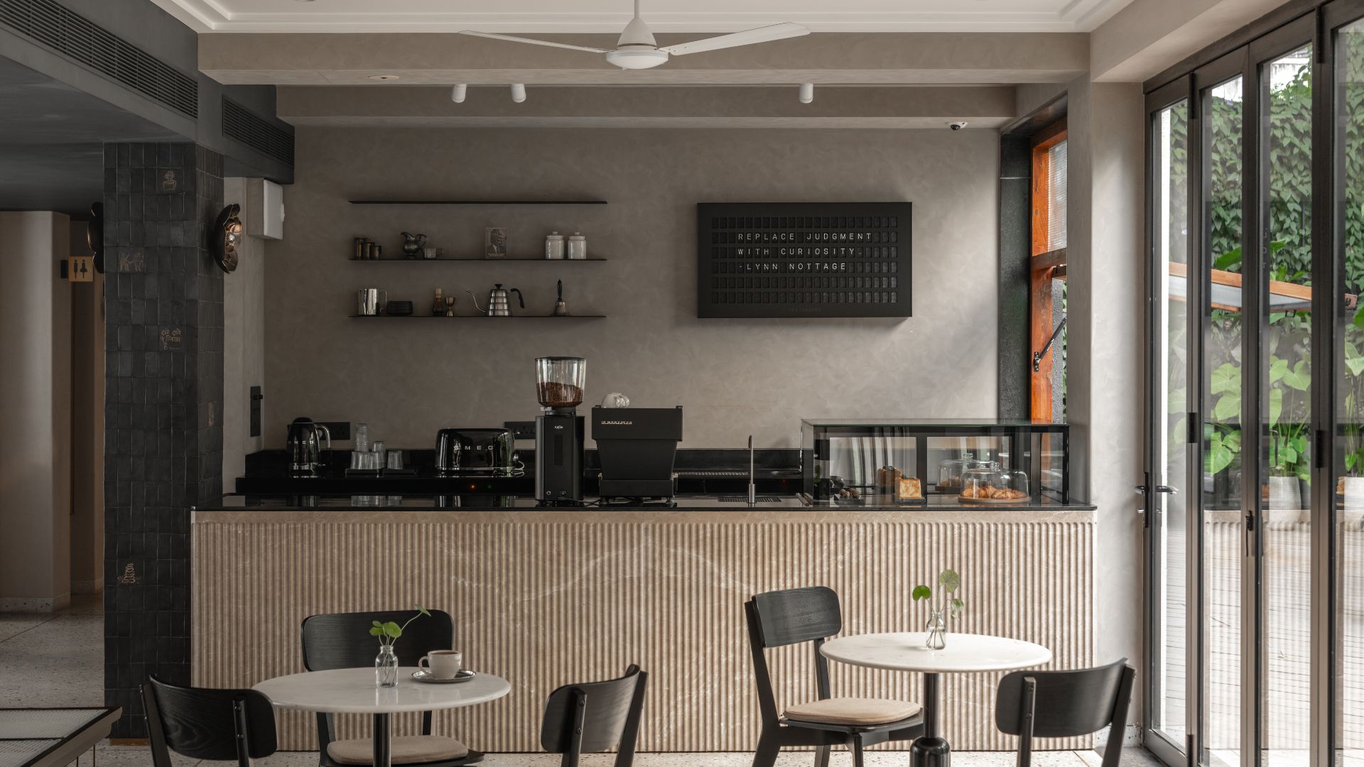 Daylight spills through glass doors onto the coffee ritual. Featuring bar by Anaaj Bistro; Photography by Kuber Shah