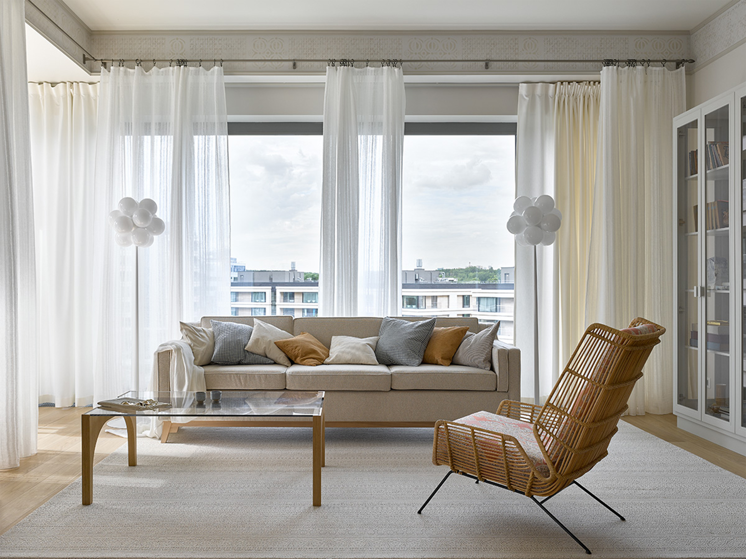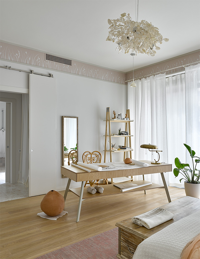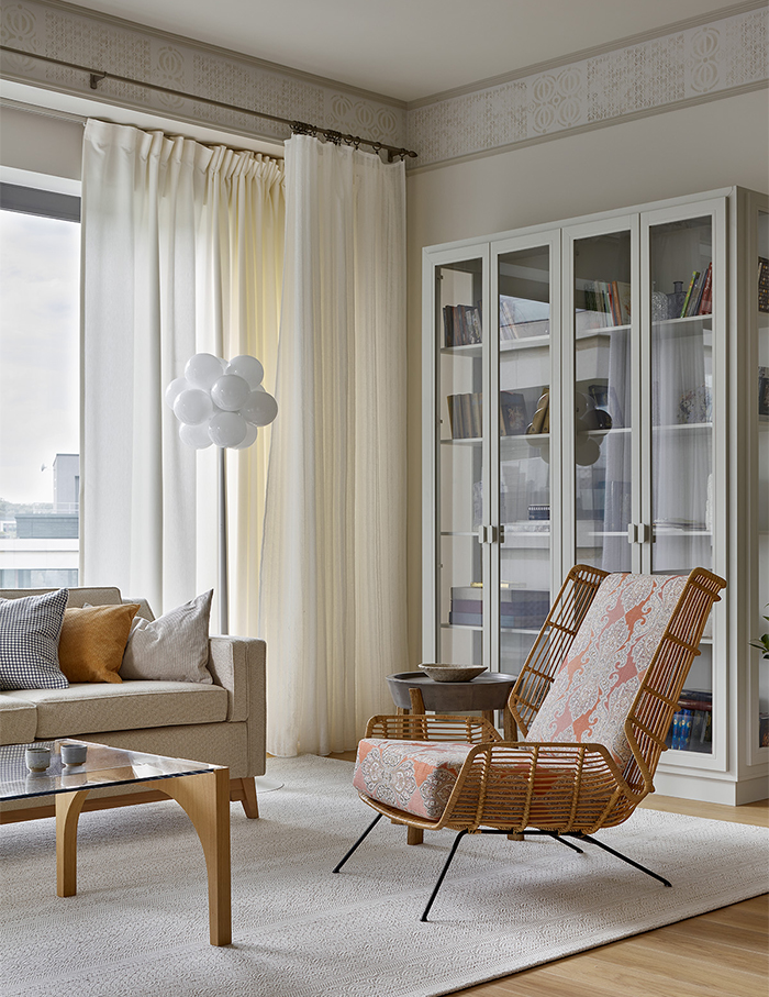 Russian interior designer Yulia Golavskaya and her namesake practice conceptualised this light, breezy and peaceful residence in Moscow as an extension of its inhabitants’ creative sensibilities. The tastefully decorated home for an artistic couple draws from their artworks, while still leaving ample room for them to explore and enhance the setting over time.