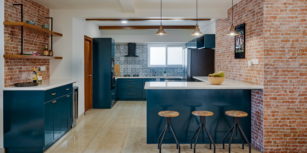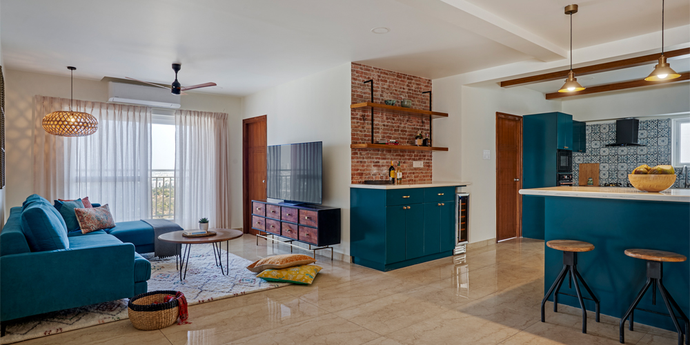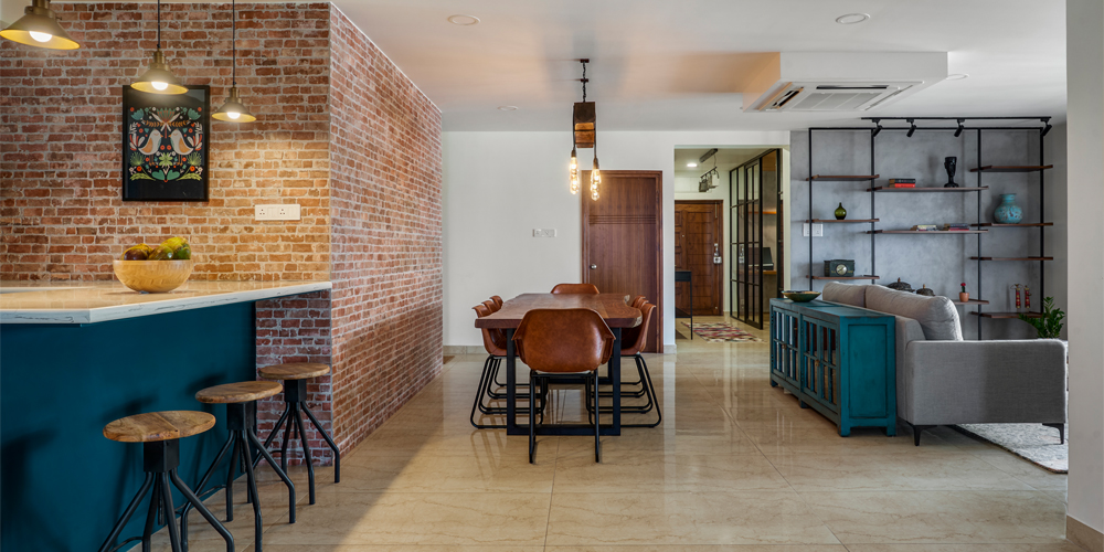 “We gave the home an urban, industrial loft vibe using elements that embodied the homeowners’ love for colours and patterns. The challenging part was to design the apartment remotely, in view of the ongoing pandemic. But we’re so glad to have accomplished structural changes as well, like converting one of the bedrooms into a lounge,” shares Amarnathan.