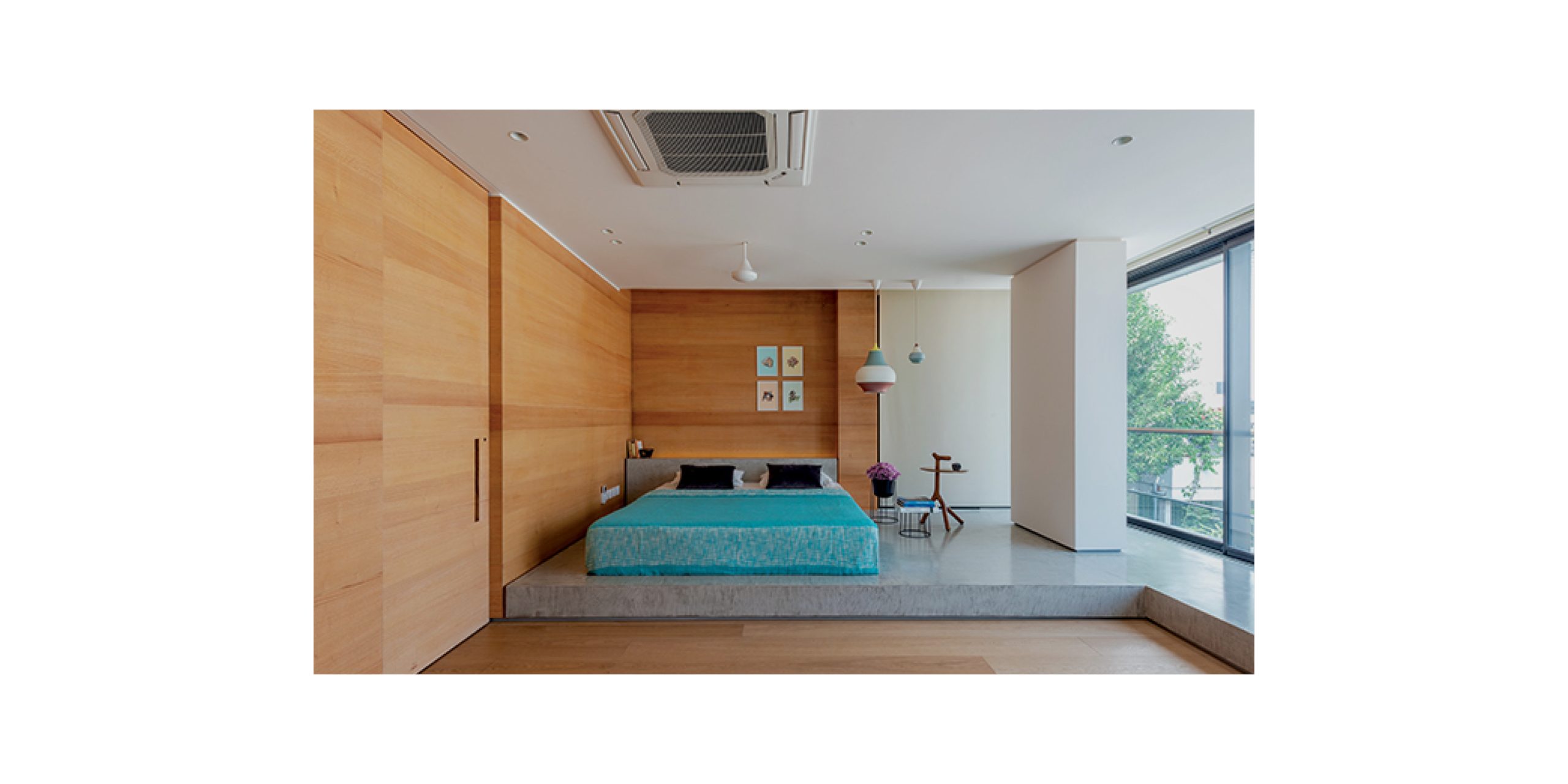 Monolithic Aura: The daughters’ bedrooms are set in a monolithic theme, using an oak and concrete material palette. The family home aesthetics blends effortlessly into the modern silhouettes. “ Although it is contemporary, I would still call it comforting.” asserts Kanan Modi of Kanan Modi associates.