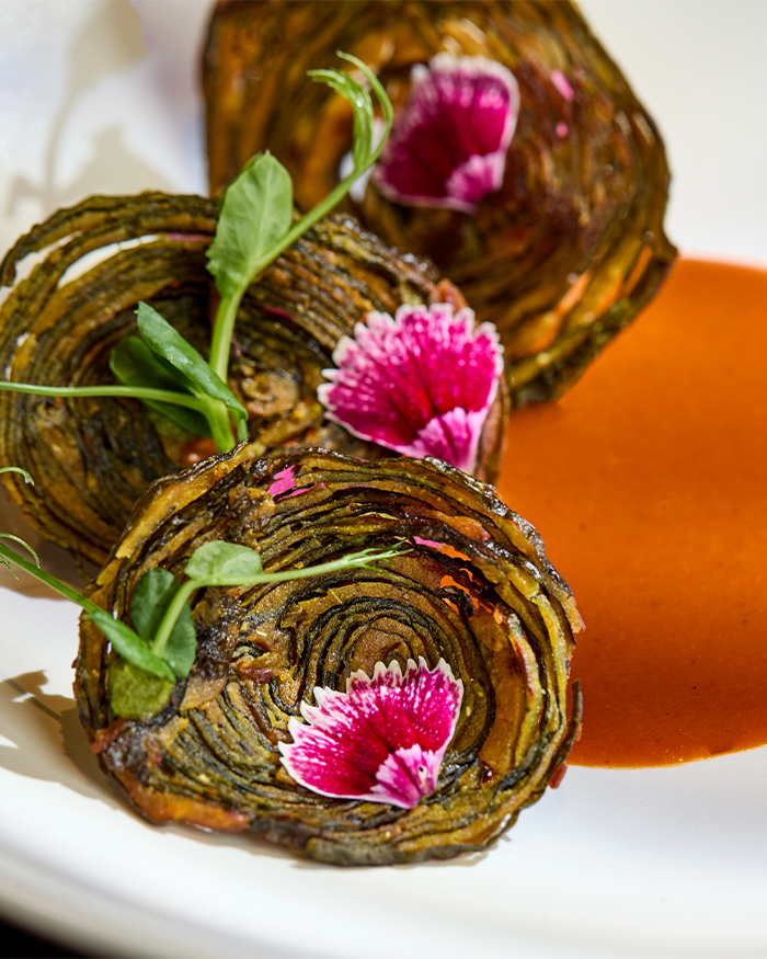 The effect of this new thought is most apparent in the banquettes with deep green, gently curved and low-slung couches softening the space and slowing the pace of eating. They are what hold the space in peace, encouraging presence and pause, just as the food does. While many restaurants recite Atithi Devo Bhava as a ritual, Trèsind Mumbai does it by rote. The hospitality amalgamates generosity with time, tact and their skilful confidence in letting diners feel seen rather than serviced.